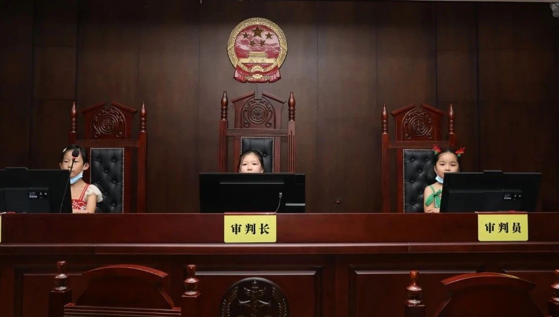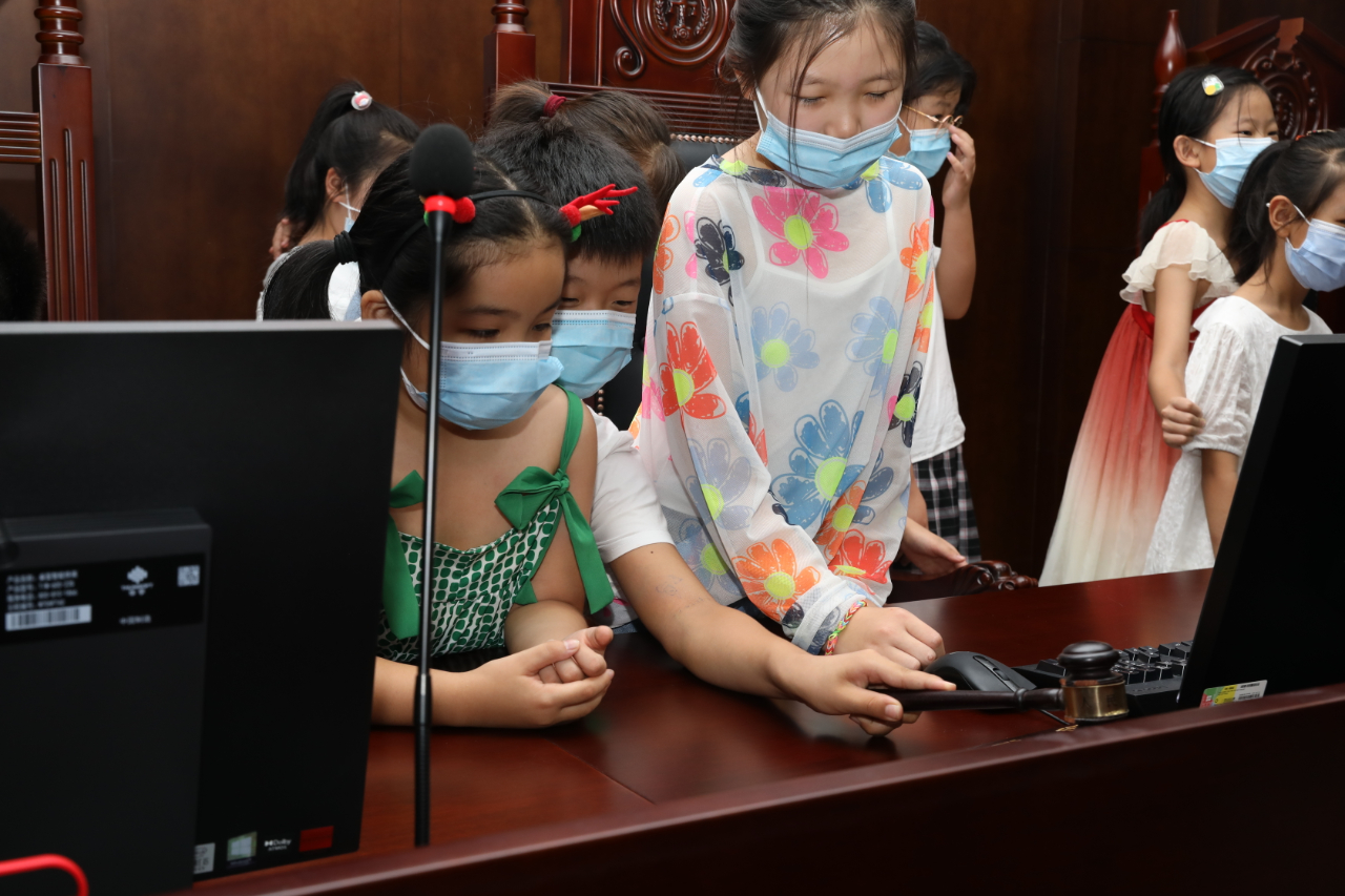 同学们纷纷坐上审判席位,模拟起开庭时的样子,俨然一副“小法官”的模样。