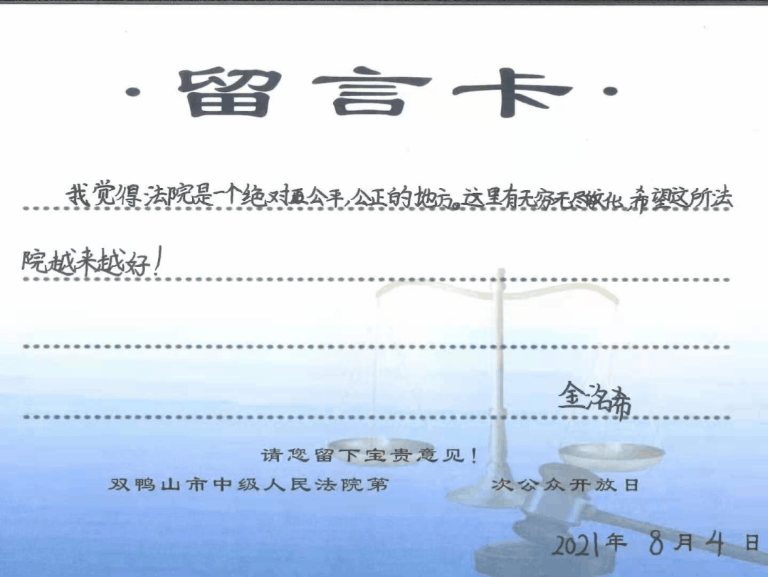 姜禹辰同学说:“以前我以为的法院只有电视中的一个法庭那么大,今天老师带我们到了真实的法院,我很喜欢,长大后我也想做一名法官。”