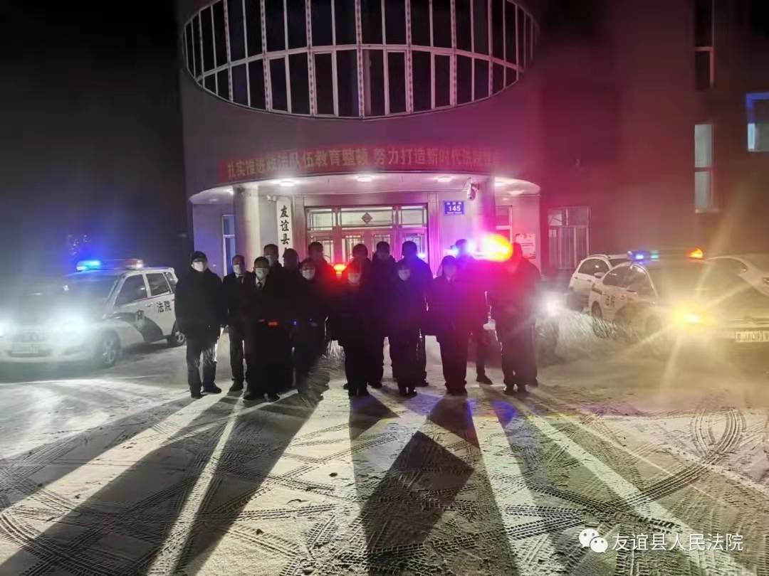2021年11月29日5点30分,天色未亮,友谊法院执行局、法警队、车队的全体干警们就已在院内集合完毕整装待发。