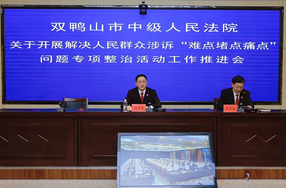 12月8日,双鸭山中院召开关于开展解决人民群众涉诉“难点堵点痛点”问题专项整治活动工作推进会,党组书记、代院长刘雪峰、党组成员、副处级以上领导干部、各部门负责同志及全体工作人员参加会议,党组副书记、常务副院长李青春传达《专项整治活动方案》并讲话。