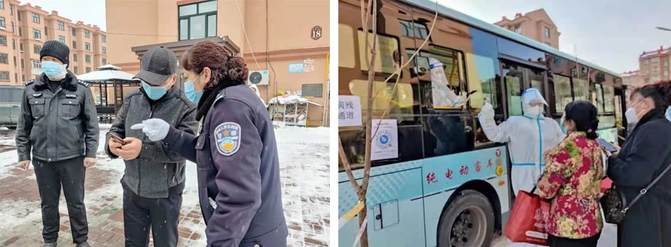 医务人员到岗后,全员核酸检测正式开启,干警们也各就各位,有了上一次核酸检测的经验,这两轮的采集工作对老年人、儿童及行动不便的群众,合理设置“老幼病残”绿色通道,有专门人员帮助他们扫码,并主动搀扶行动不便人员,获得大众一片赞誉。为减少群众排队时间,确保现场秩序井然,干警们不停地前后奔走,不停地大声说话: