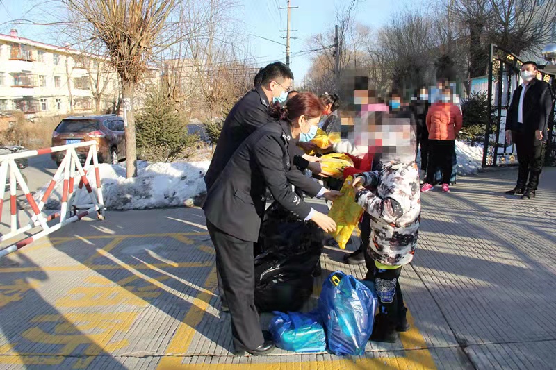 法警大队的党员志愿服务队伍走进育杰小学,为贫困学生们送去爱和希望。干警们将满载着爱心的初春衣物、书籍等生活学习用品送到了孩子们手中,鼓励他们克服困难,树立远大理想,用新理念、新知识、新本领去适应和创造新生活。