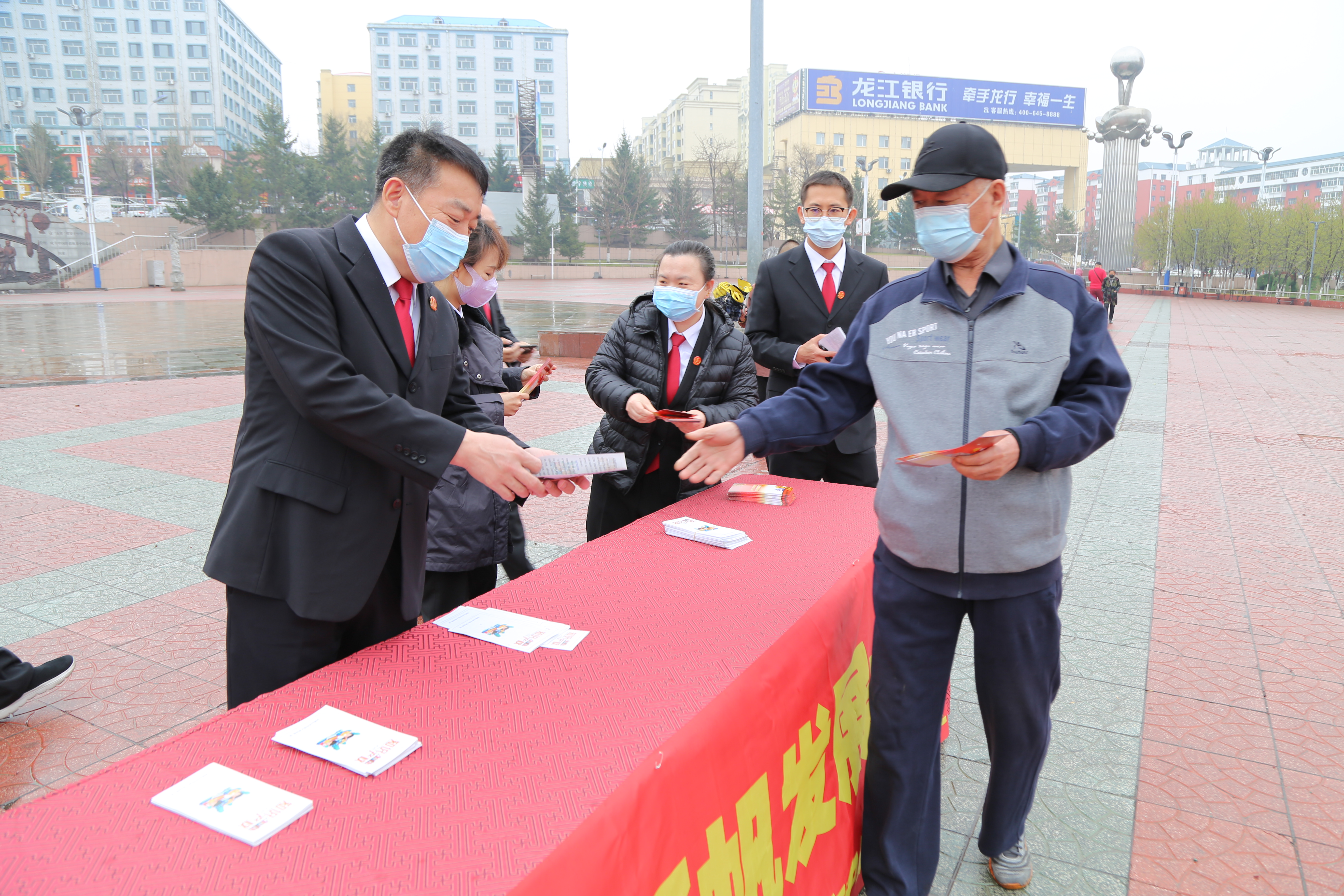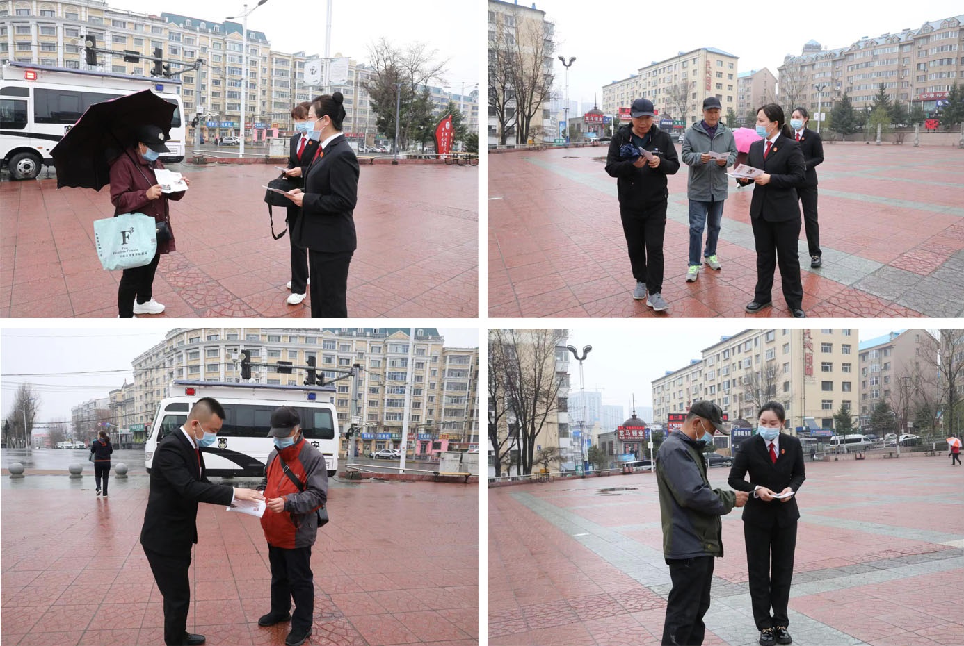 4月26日,为进一步普及知识产权知识、提高知识产权保护力度,提升产权意识,规范经营行为,双鸭山市中级人民法院走进企业、走上街头、走进商场、走近群众,落实优化营商环境的工作举措,丰富普法宣传形式,营造浓厚法治氛围。党组成员、副院长王占林、民事审判三庭全体工作人员参加普法宣传活动。