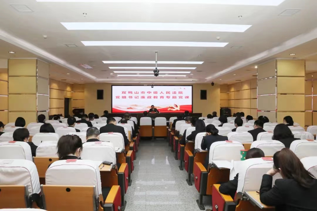 为坚定不移推进全面从严治党从严治院从严治警,引导全体干警增强不敢腐、不能腐、不想腐的自觉,切实做到知敬畏、存戒惧、守底线,4月29日,双鸭山中院党组书记、院长刘雪峰以“坚决贯彻全面从严治党战略部署,勇于自我革命,为推进全市法院高质量发展提供坚强政治保障”为题,为全体干警作专题廉政党课辅导。