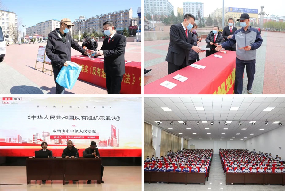 双鸭山法院将《反有组织犯罪法》列入“八五”普法宣传重点内容,充分运用微信公众号等线上新媒体平台,通过条文解读、在线课堂等多种方式,及时发布《反有组织犯罪法》相关权威解读、其他法院工作经验等内容,供全市法院干警学习借鉴;积极开展集中宣传活动,通过悬挂宣传条幅、设立宣传展板、分发宣传册和宣传单的方式,在商业街、广场、街道等地进行现场宣传,在社会上广泛营造舆论氛围;积极开展《反有组织犯罪法》“七进”活动,深入学校、机关、企业等地进行法治宣传,营造反有组织犯罪舆论氛围,组织干警进校园专题宣讲《反有组织犯罪法》,提高中小学生自我保护能力,助力建设平安校园。