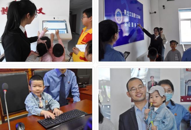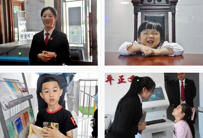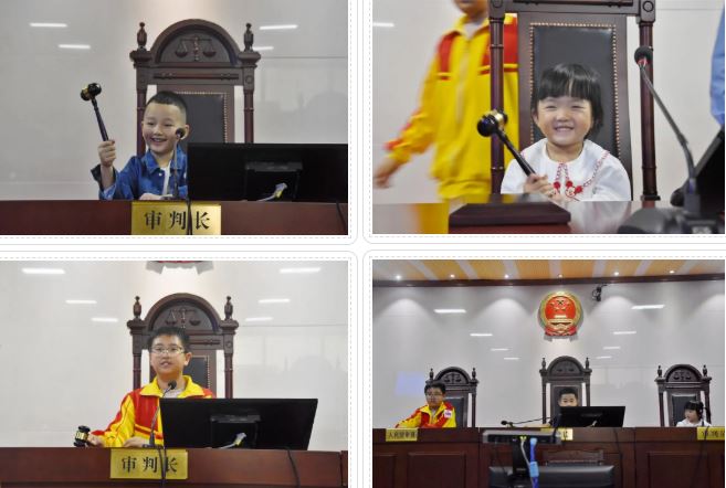 讲解员以互动的方式,避免使用过于专业的辞藻,以小朋友能够听懂为目标,介绍院内各项功能,了解《未成年人保护法》《预防未成年人犯罪法》《家庭教育促进法》,引导孩子们体验便民设施,坐上法官的位置敲响法槌......