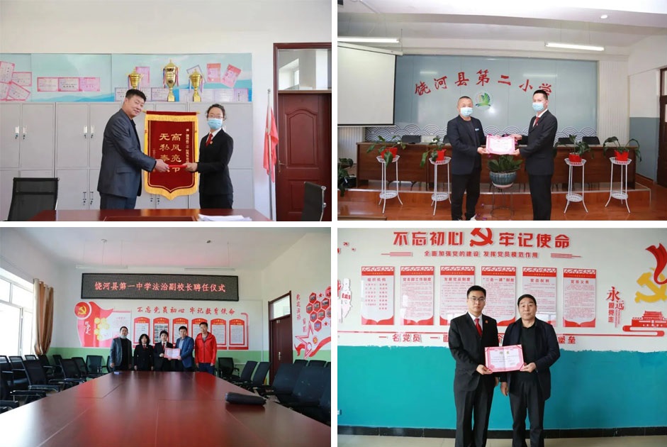 饶河县人民法院新任法治副校长对学校、老师和家长关心的法律知识进行重点讲解,普及《未成年人保护法》《预防未成年人犯罪法》等法律法规,切实维护未成年人的合法权益,引导青少年从小尊法、学法、守法、用法,学会用法律武器保护自身安全,健康成长,为饶河平安校园建设贡献法院力量。