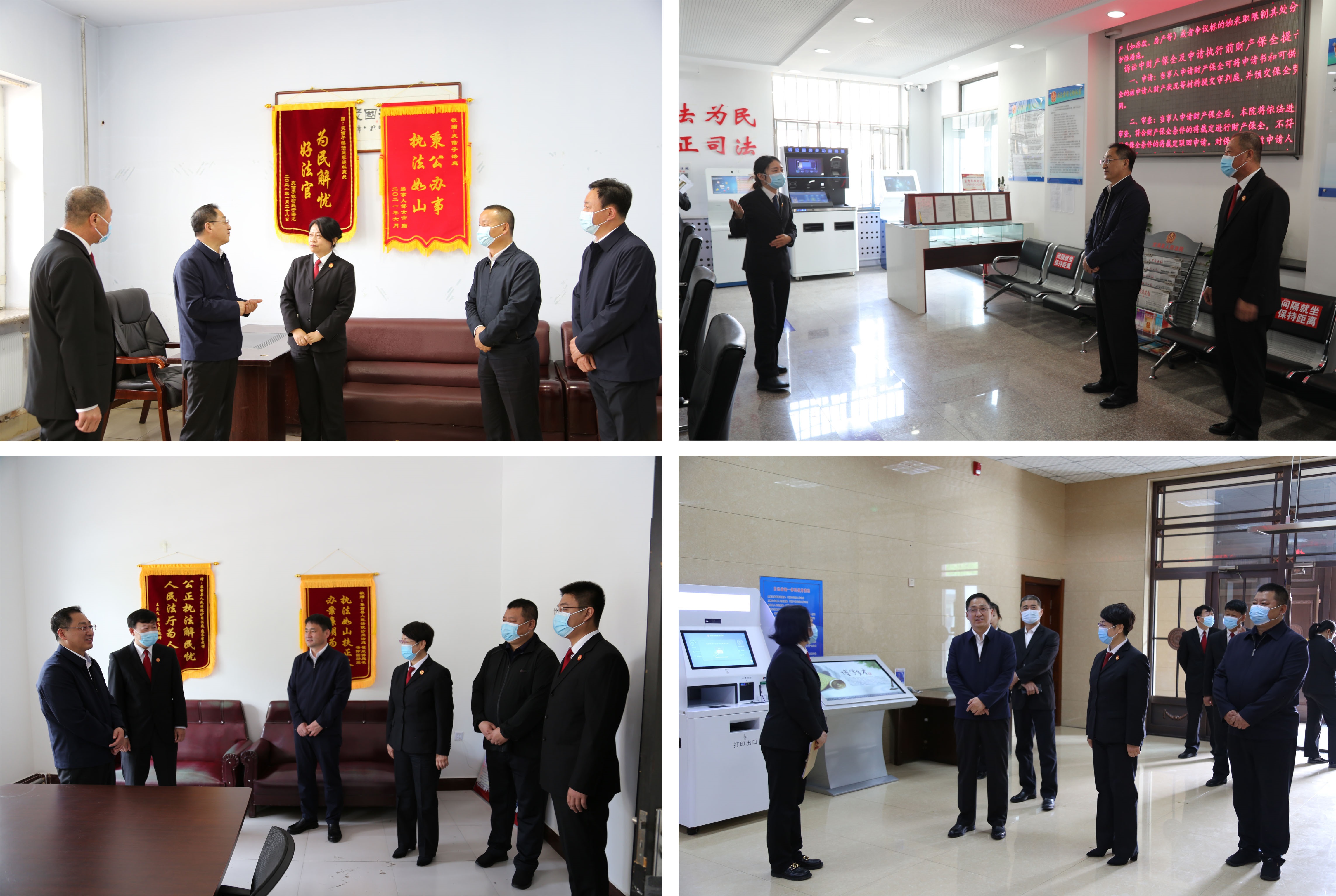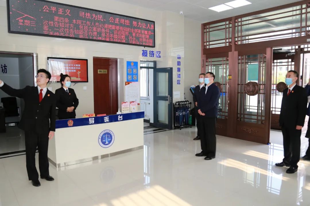 在基层法院和派出法庭,刘雪峰实地体验了安全检查和诉讼服务流程,详细了解了法庭建设、人员配备、案件办理及重点工作开展情况介绍,与诉讼当事人、驻院调解员及案件代理律师进行深入交流,就进一步优化工作流程,提升诉讼服务质效提出了具体指导意见。在查看诉讼服务中心、执行指挥中心、党建室等场所、听取整体工作情况汇报后,对各基层法院主要工作情况给予高度评价,对县委、县政府、县委政法委一直以来关心、支持法院工作表示感谢,就进一步提升全市法院整体工作水平,统筹开展好“能力作风建设年”“三航行动”等重点工作,提高服务保障能力,逐院施策,提出要求和希望。