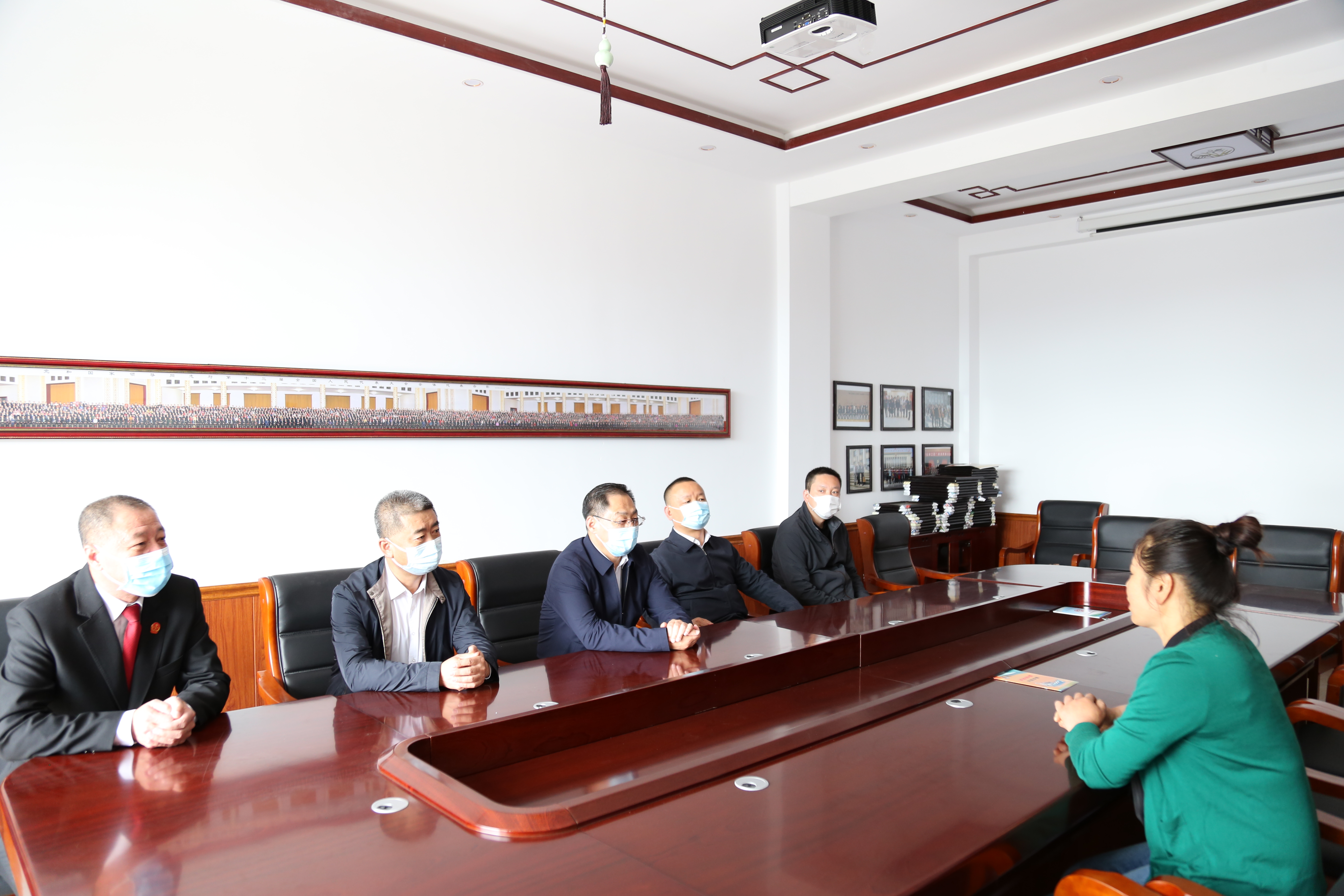 5月26日,双鸭山市中级人民法院党组书记、院长刘雪峰到宝清县鑫淼食用菌种植专业合作社走访全国人大代表鞠秀芹,通报近期重点工作开展情况,征求意见建议。宝清县委副书记、县长蔡纯意,县委常委、政法委书记刘大海,市中院党组成员、副院长于夫鑫,宝清县法院党组书记、院长王军陪同走访。