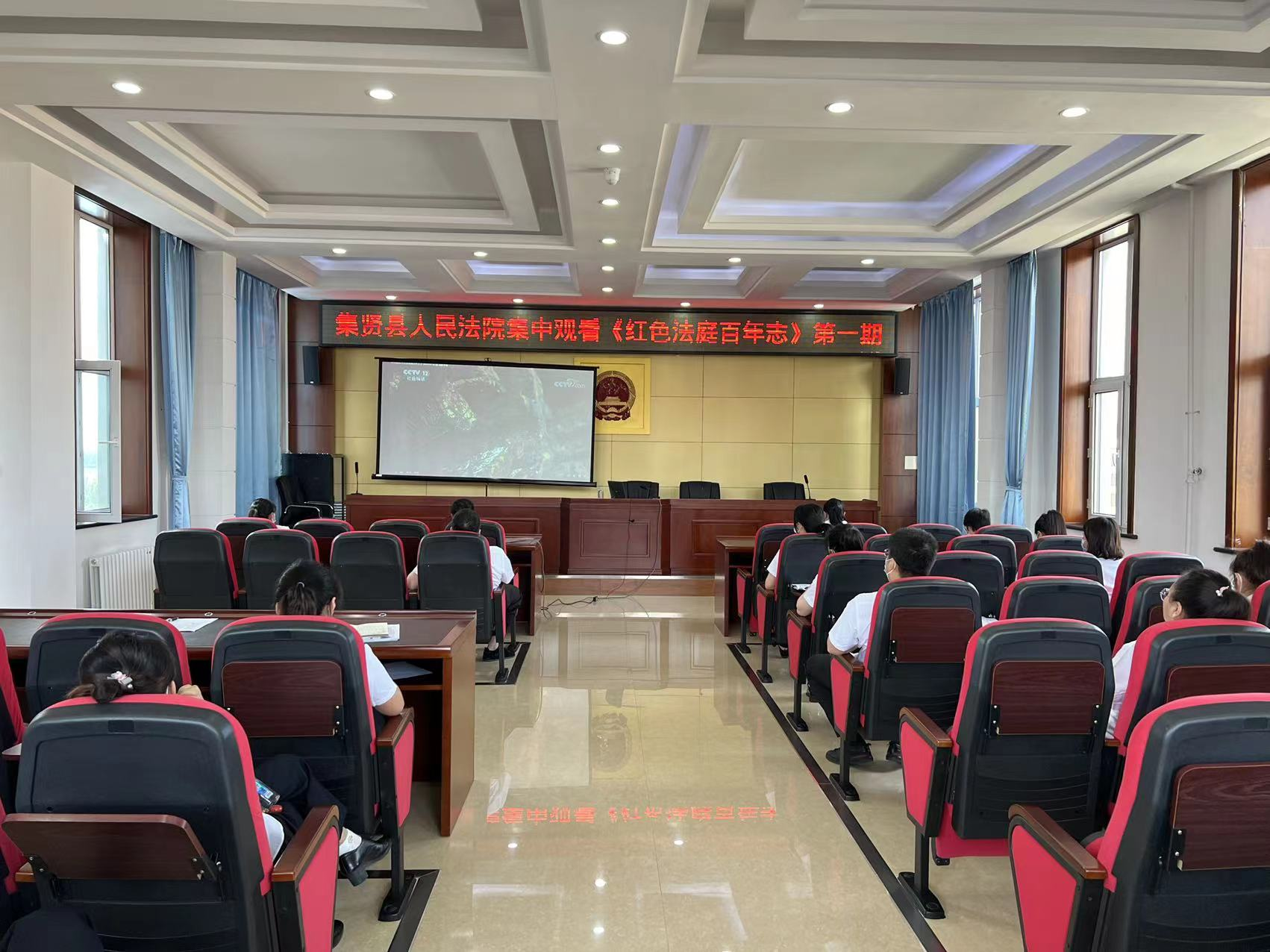 党课结束后,法院又组织干警们集中观看了《红色法庭百年志》纪录片。