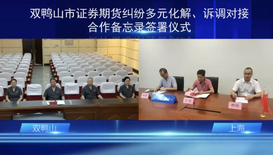为扎实开展“能力作风建设年”活动和优化营商环境专项活动的部署,进一步贯彻落实最高人民法院、中国证监会《关于全面推进证券期货纠纷多元化解机制建设的意见》《关于建立“总对总”证券期货纠纷在线诉调对接机制的通知》以及国务院办公厅《关于进一步加强资本市场中小投资者合法权益保护工作的意见》的文件精神,加强双鸭山地区投资者权益保护,2022年6月15日,双鸭山市中级人民法院与中证资本市场法律服务中心通过线上形式正式签署《关于证券期货纠纷多元化解工作合作备忘录》(以下简称《备忘录》),全面深化证券期货诉调对接合作。