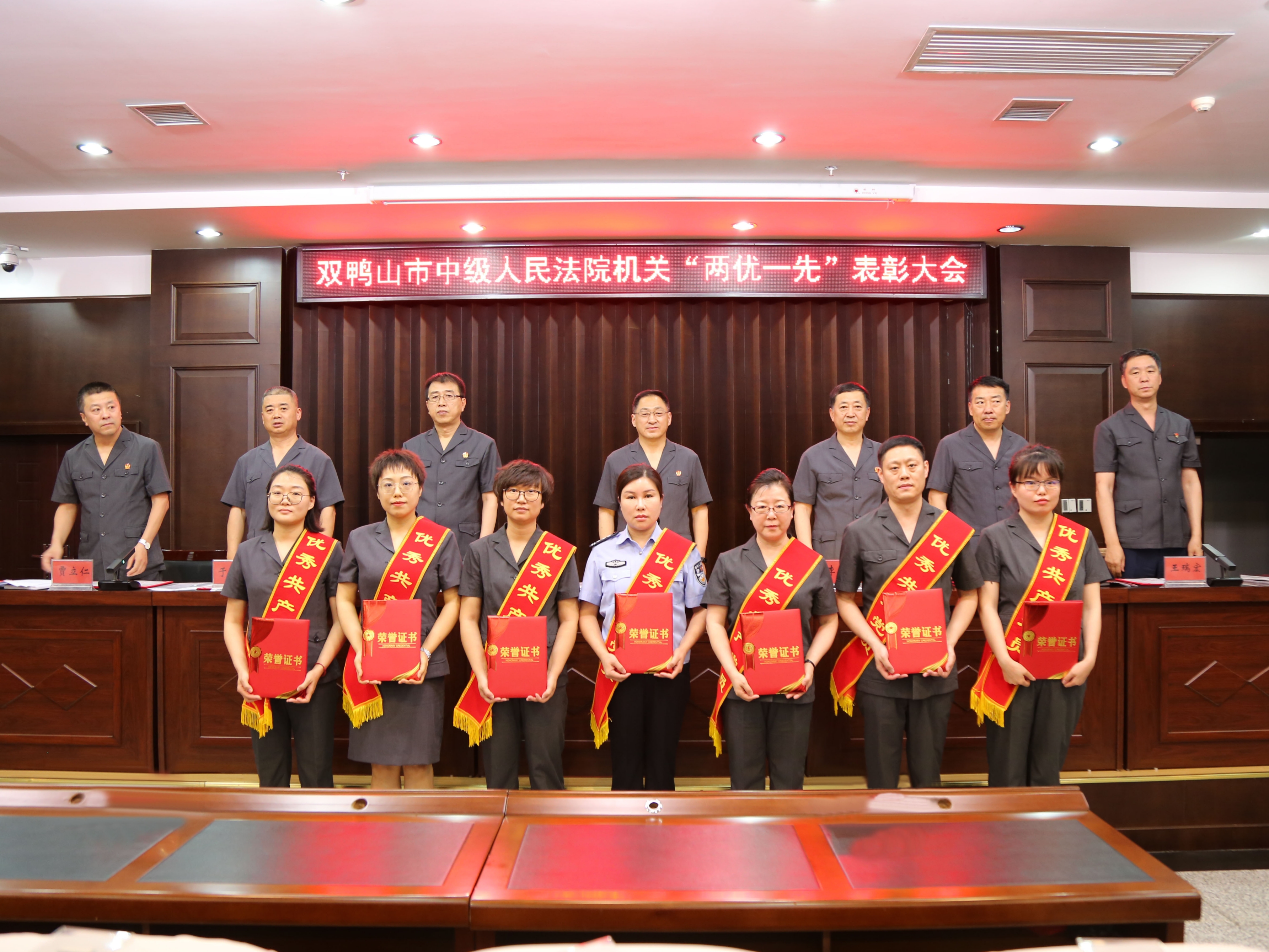 6月29日,在中国共产党建党101周年来临之际,双鸭山市中级人民法院机关召开“两优一先”表彰大会。对8名工作业绩突出的优秀共产党员,4名优秀党务工作者和2个先进党支部进行表彰。通过宣传选树能力强、作风实的先进典型,激励干事创业、担当作为精神,提振奋进新时代、再创新辉煌的工作热情,坚持跳起摸高、争创一流,锚定“全面工作创一流,重点工作争先进”工作目标,坚决打赢能力作风建设攻坚战。