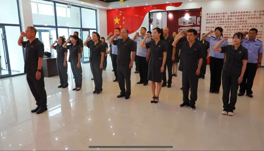 参观前,党组书记、院长李德福带领全体党员面向党旗,重温入党誓词,激励干警们永葆对党忠诚政治品格,不忘初心担使命,砥砺前行再出发,进一步领悟“两个确立”决定性意义,当好“两个维护”的忠诚践行者。