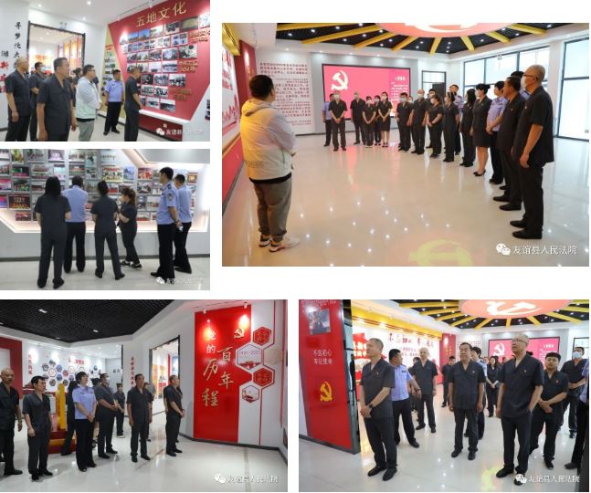 为庆祝中国共产党成立101周年,进一步巩固党史学习教育成果,结合机关“能力作风建设年”活动,提升干警的凝聚力和向心力,6月28日,友谊县法院组织干警到县新时代文明实践中心,了解友谊县革命历史,缅怀先烈丰功伟绩,接受红色传统教育。