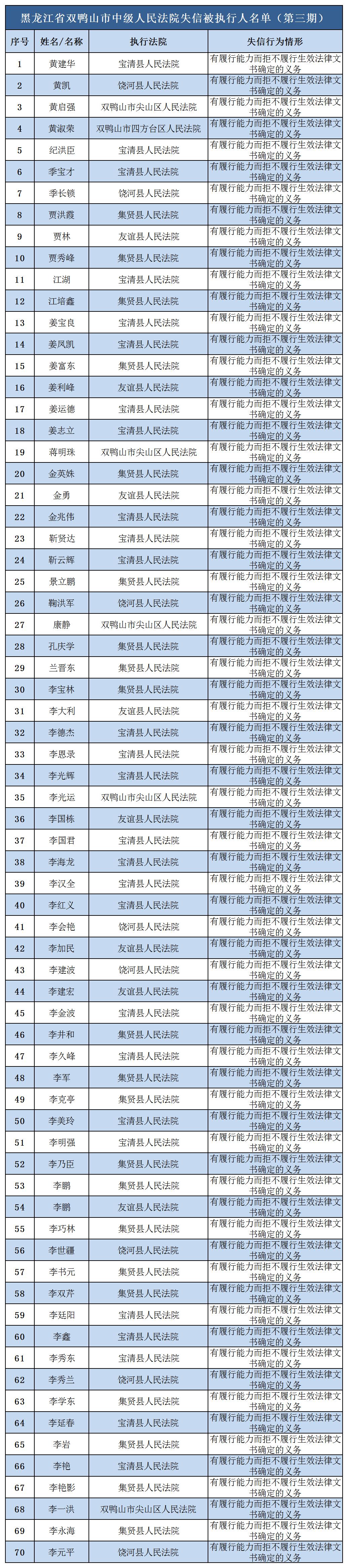 为敦促在案被执行人自觉履行生效法律文书确定的义务,推进社会诚信体系建设,根据《中华人民共和国民事诉讼法》第二百六十二条和《最高人民法院关于公布失信被执行人名单信息的若干规定》(修订版)第七条的规定,对下列被执行人的失信信息向社会予以公布,限下列被执行人在案件执结前,在全国范围内不得有乘坐高铁、飞机、住星级宾馆等高消费行为,并将在政府采购、招标投标、行政审批、政府扶持、融资信贷、市场准入、资质认定及征信系统记录等方面受到信用惩戒。提醒广大人民群众慎重与失信被执行人交往,防范交易风险,确保个人资金安全,同时欢迎对被执行人的违法违规行为进行监督、举报。失信被执行人名单信息公布后,当失信被执行人履行全部义务,可以向本院申请从失信被执行人名单中删除失信信息。
