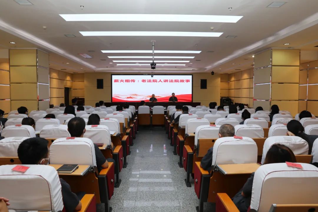 立案庭庭长杨利国回忆往事,用朴实的语言、真挚的情感,以亲身经历讲述了人民法院的发展与变化,讲述了自己的办案故事,为全体干警上了生动的一课,帮助青年干警在心中种下忠诚、干净、为民、担当的"种子",自觉扣好司法职业生涯行稳致远的"扣子"。