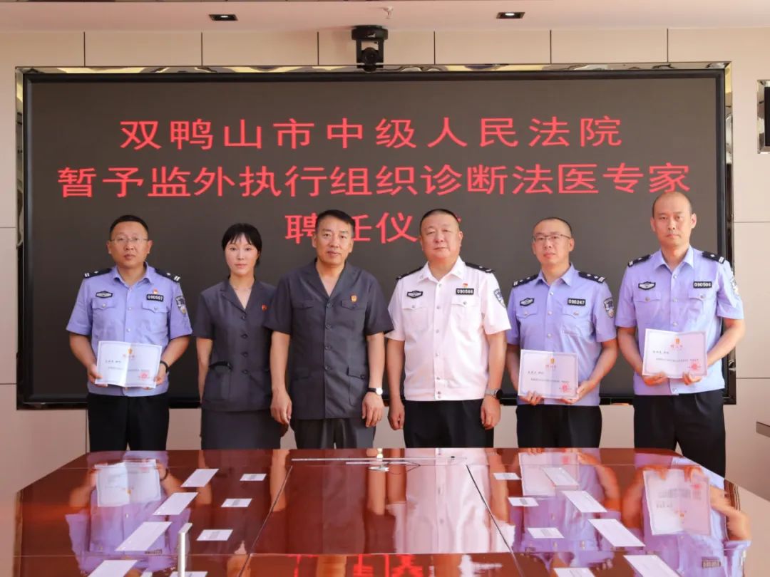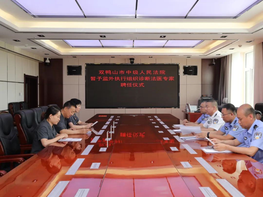 8月5日,双鸭山中院举行暂予监外执行组织诊断法医专家聘任工作会议,党组成员、副院长王占林参加会议并讲话,市公安局刑事技术支队支队长黄亚辉与3名法医专家代表出席会议,技术室主任孙瑶主持会议。