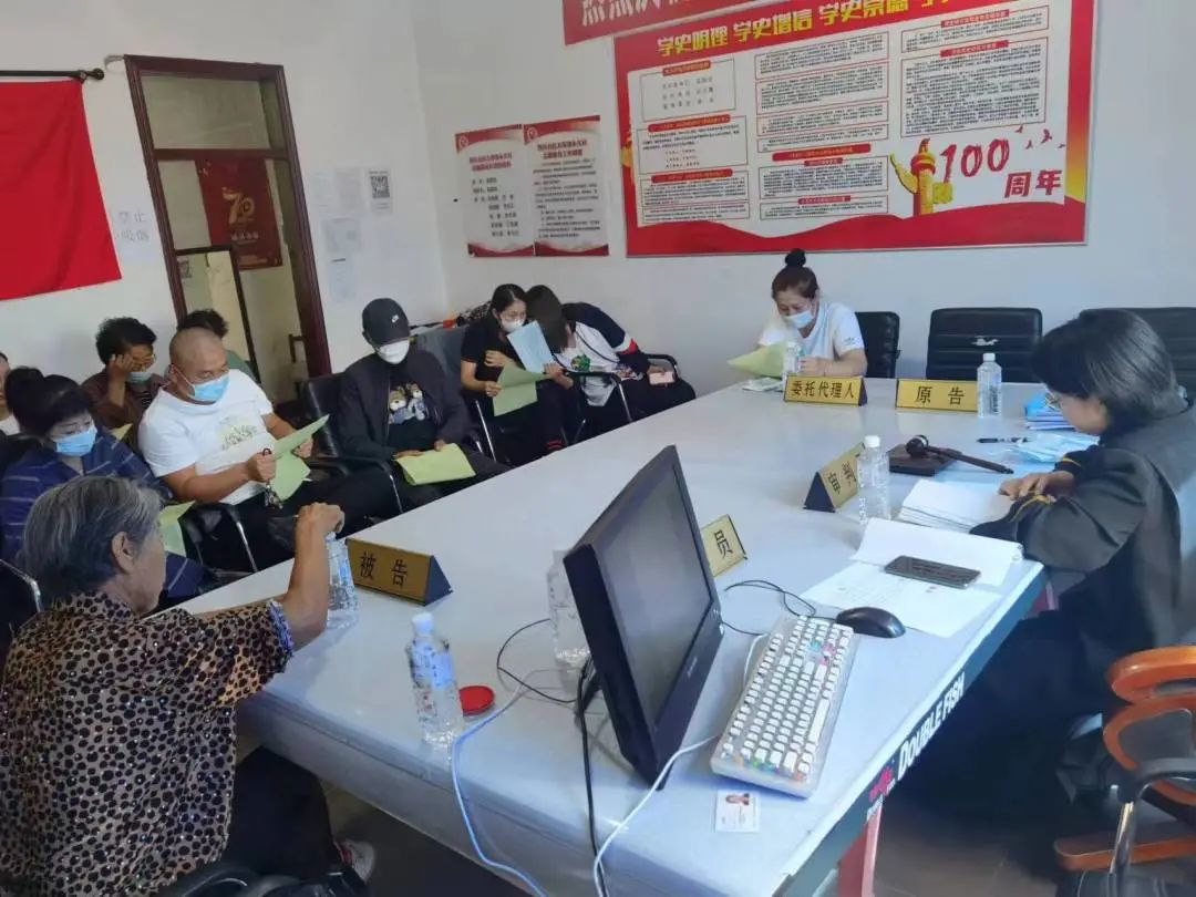 庭审当日,双方按时到达村委会,部分村民也到场旁听。庭审过程严格依照法定程序,法官耐心向双方当事人释法析理,详细讲解《土地法》等相关法律法规,劝导双方以和为贵。