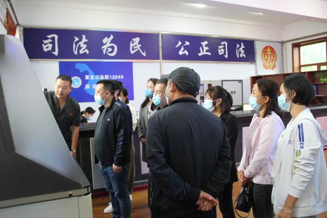 参观人员到诉讼服务大厅、科技法庭、执行指挥中心等场所进行体验。在诉讼服务中心,讲解员详细地向大家介绍了诉讼服务中心的职能及相关诉讼流程,让大家全方位、零距离感受法院一站式多元解纷和诉讼服务体系建设方面的努力,在科技审判庭,参观者们通过实地参观,真切感受到现代科技在法院审判工作中的运用及取得的高效法治效果。在执行指挥中心大家了解了在“互联网+”的背景下智慧型法院的执行系统,使大家加深了对现代化法院的理解。