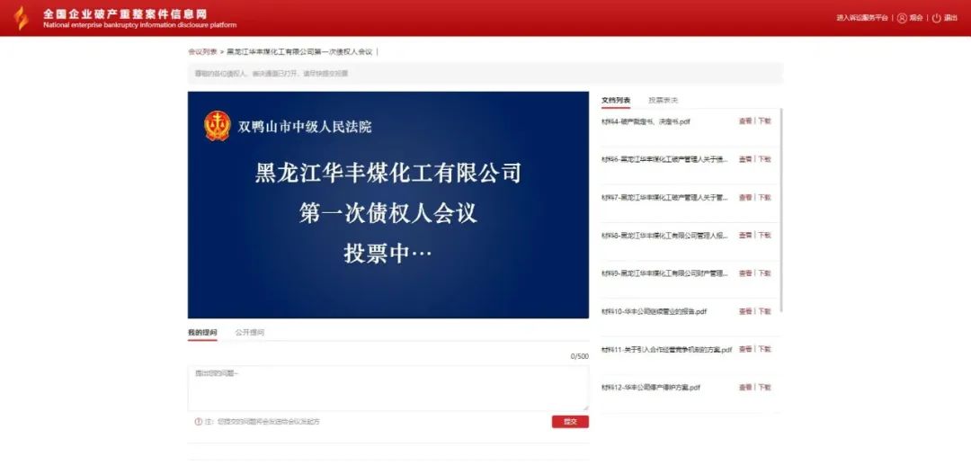 秉承“让群众少跑腿,让数据多跑路”的理念,保护当事人诉讼权益,结合疫情防控的要求,10月20日,双鸭山中院首次运用“全国企业破产重整案件信息网+腾讯会议”相结合的方式召开黑龙江华丰煤化工有限公司破产重整案件债权人会议,会议采用线上网络直播和线下现场参会相结合的方式召开,是双鸭山中院受理的首例企业破产重整案件。