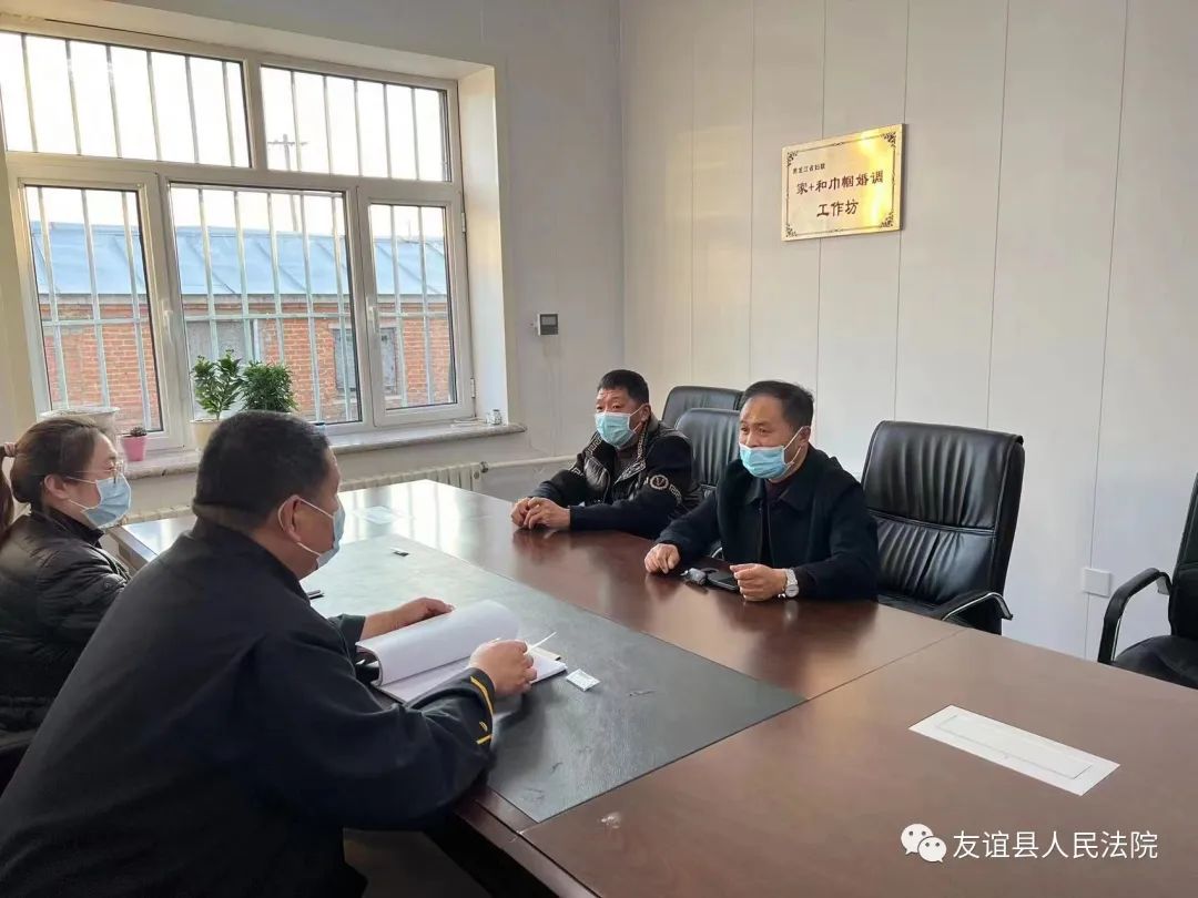 家是最小国,国是千万家。家庭和睦则社会安定,家庭幸福则社会祥和。友谊县人民法院按照友谊县执行合同专班工作要求,结合工作实际,在家事审判工作中积极探索,大胆实践,与县妇联、公安局、司法局、医疗卫生以及相关社会组织、基层单位等部门相互配合,建立各相关部门联动多元调解机制,确定以“构建和谐家庭关系,引领良好家风,维护社会稳定,弘扬社会主义核心价值观,依法保护未成年人、妇女、老人的合法权益”为根本目标,积极发挥家事审判职能作用。2022年8月25日友谊县人民法院首个“家事调解室”成立,家事调解室设有常驻调解员2名,兼职调解员8名,创新推出“1+N”工作模式,全力为家庭和谐保驾护航。