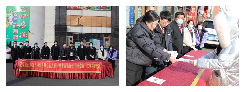 为弘扬“奉献、友爱、互助、进步”的志愿精神,推进学雷锋志愿服务制度化、常态化,在全国第60个“学雷锋纪念日”到来之际,双鸭山中院第五党支部开展“学雷锋见行动 争当先锋”法治宣传活动。
