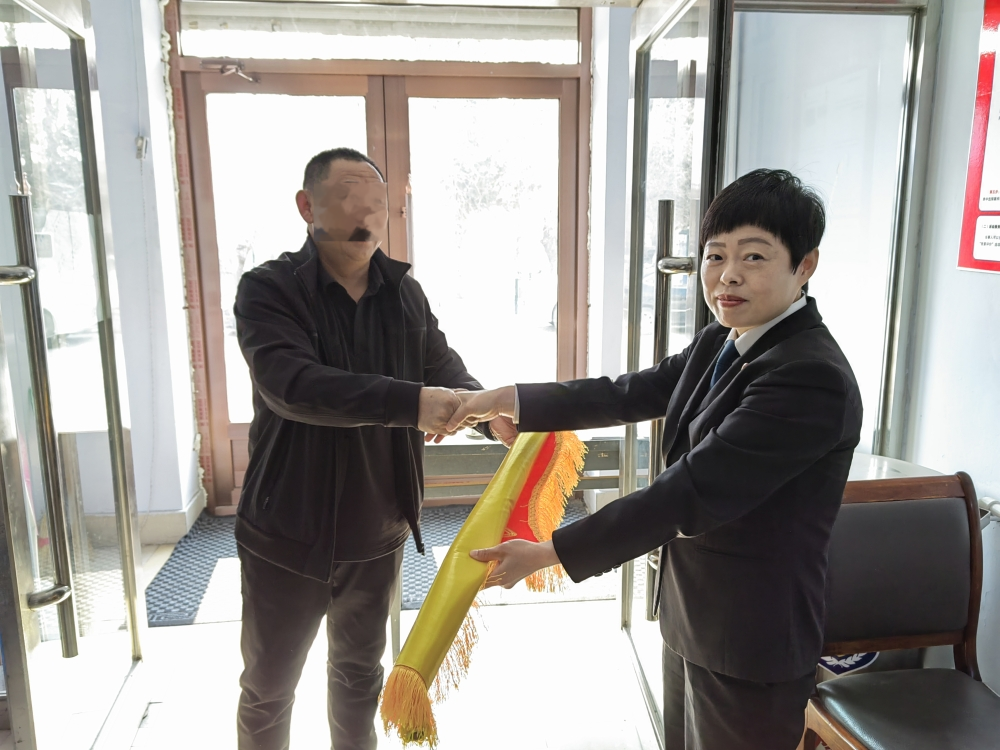 近日,七星泡镇三合村一家农资商店的经营者车某一大早就带着印有“诉前调解见成效,十年欠款今得偿”的锦旗来到了宝清县七星泡法庭,将锦旗送到了法庭和调解员的手中,并表示由衷的感谢。