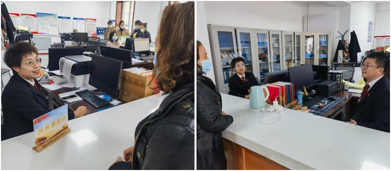 第六党支部党员法官姜辉、薛龙接待群众来访