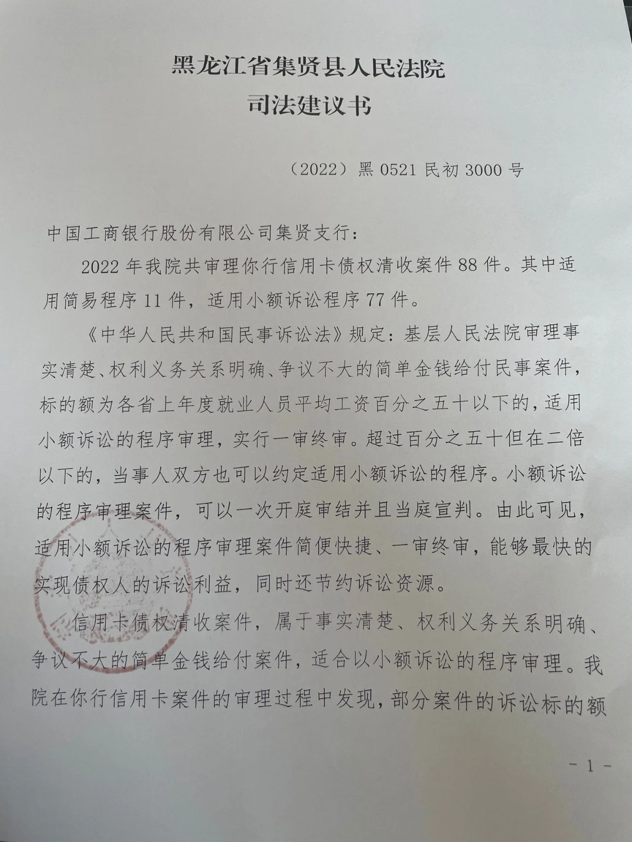 集贤县法院提出的约定适用小额诉讼的程序审理案件,是我市法院系统首次对金融机构提出司法建议。通过该建议的落实,可以有效的解决金融机构信用卡债权清收的诉讼程序问题,能够真正做到司法审判高效为金融机构保驾护航。