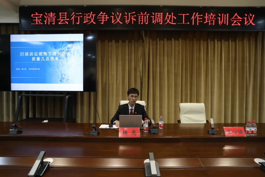 为进一步提高行政机关执法人员的执法能力和水平,推进行政争议诉源治理工作,4月14日,双鸭山中院行政审判庭庭长杨亮受邀以《行政诉讼视角下提升行政执法质量几点思考》为题,结合全市重点行政领域案件审理情况,从行政诉讼与行政执法之间的关系、行政诉讼审查要点、裁判方式类型及选择等方面,围绕如何提升行政执法质量以及加强行政争议诉源治理重大意义等问题,为友谊县、饶河县、宝清县50余名行政执法人员进行专门授课。