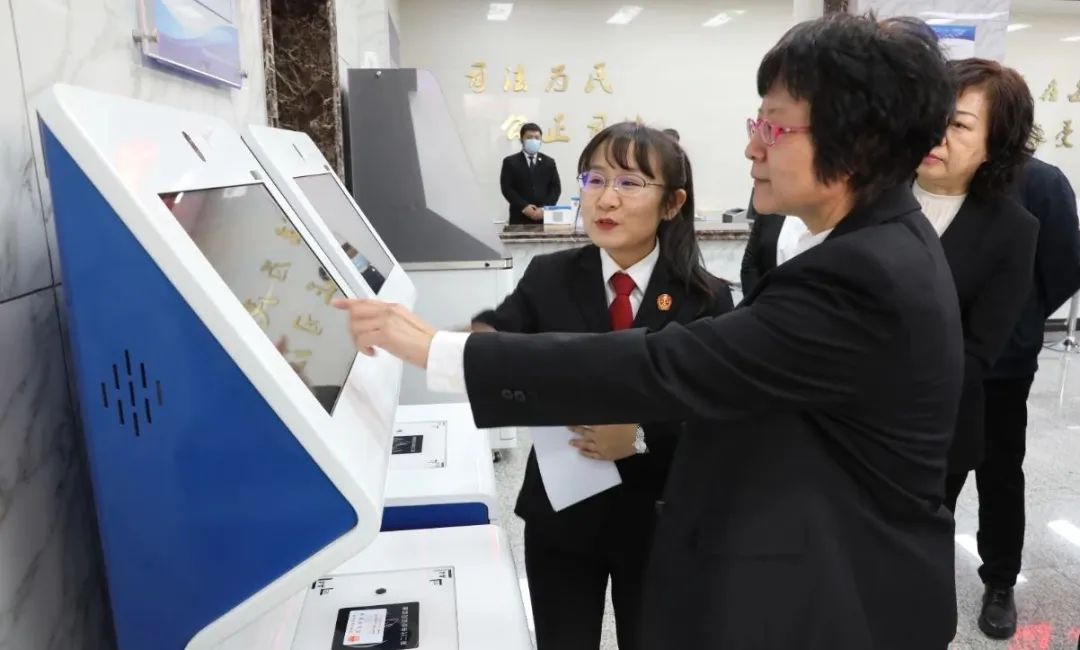 工作人员先后介绍了立案服务区、自助服务区、信访服务区和综合服务区四大区域,重点汇报了立案“零咨询”白话指导卡改革、诉讼小秘书、8+X总对总多元解纷机制等工作情况。王威组长对诉状辅助生成一体机、诉讼风险评估机和自助阅卷机等智能化设备进行体验式操作。