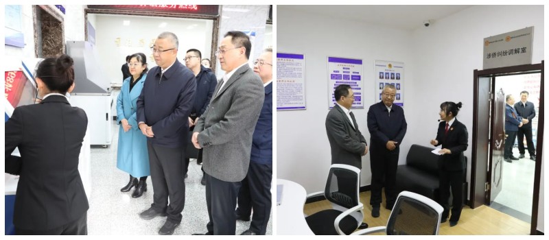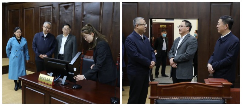 4月21日,双鸭山市政协主席、党组书记魏丙新带领部分政协委员走进双鸭山市中级人民法院,参加“助力优化法治化营商环境”主题开放日活动,以实地走访、体验交流等方式深入了解法院充分发挥司法职能,创新优化司法服务,为营造法治化营商环境所做的各项工作。党组书记、院长刘雪峰陪同参观。