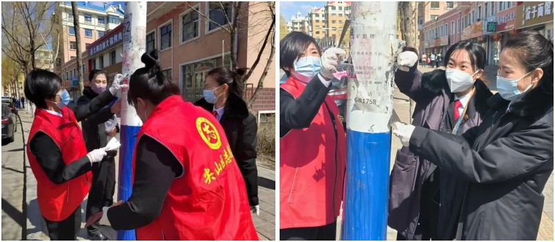 为助力开展城乡环境治理,进一步净化城市面貌,双鸭山中院组织党员志愿者和青年志愿者与长安街道长安社区对接,针对辖区内背街小巷卫生死角开展卫生巡查,对辖区内“牛皮癣”进行专项治理,配合社区工作人员清除“小广告”约130处,收缴各类小广告宣传单50余份。