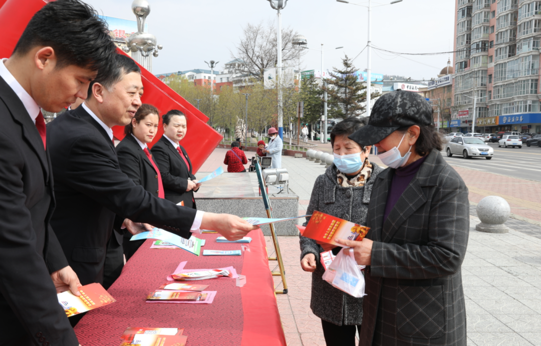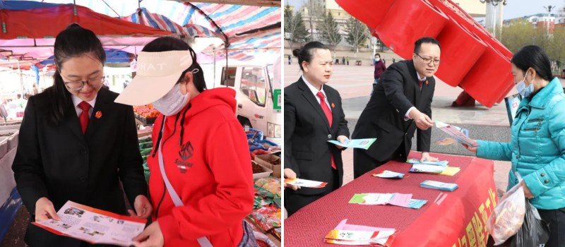 为进一步推动常态化扫黑除恶斗争向纵深发展,深入开展《反有组织犯罪法》实施一周年宣传活动,4月28日上午,双鸭山市中院组织两级法院上下联动、同步发力,通过多种形式开展集中宣传活动。两级法院共悬挂宣传条幅9个、设立宣传展板10个、分发宣传册和宣传单1300余份、LED屏幕2个,深入2家企业、3个社区、2个学校、3个村屯向现场群众宣讲反有组织犯罪的相关法律知识。