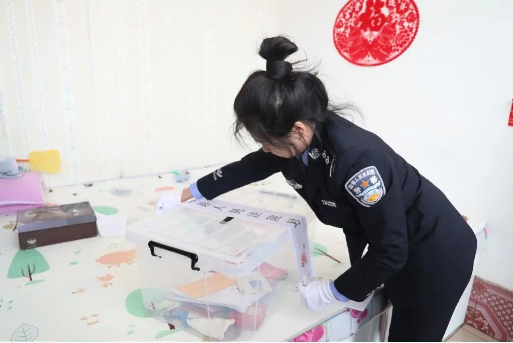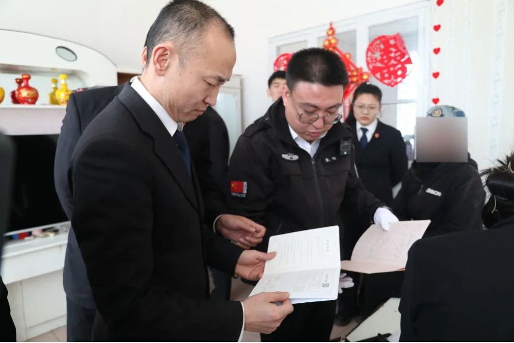执行干警正在查看搜查的材料