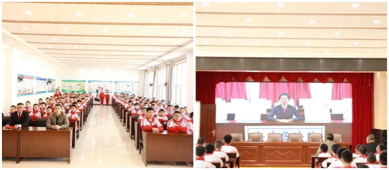 干警与师生共同参加了校园升旗仪式。升旗仪式后,孙宝林法官结合自身的工作经历和真实案例,为学生们上了一堂法治教育课,讲解了什么是校园欺凌,校园欺凌的种类、参与者、危害,如何预防和应对校园欺凌,并重点对未成年人打架斗殴、校园欺凌等社会关注的热点事件进行讲解,用以案释法的方式引导和教育学生们要树立正确的法治观念,增强法治意识,养成遵纪守法的好习惯,遭遇校园欺凌时正确运用法律武器维护自身合法权益。