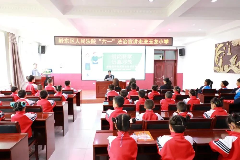 岭西法庭干警、法治副校长李亚芬、杨玉莹到逸夫小学、玉龙小学,以“崇尚科学 远离邪教”为主题,向同学们讲述了反邪教的相关内容,课堂上,法治副校长针对小学生的年龄特点和接受能力,精心制作了图文并茂的课件,用通俗易懂的语言向在场师生讲解了邪教的本质与危害,教育广大师生要追求文明、崇尚科学,自觉抵御邪教侵蚀,对邪教做到“不听、不看、不信、不传”,同时,鼓励广大师生如果发现有邪教宣传品或邪教人员及时主动报警,争当反邪小先锋。
