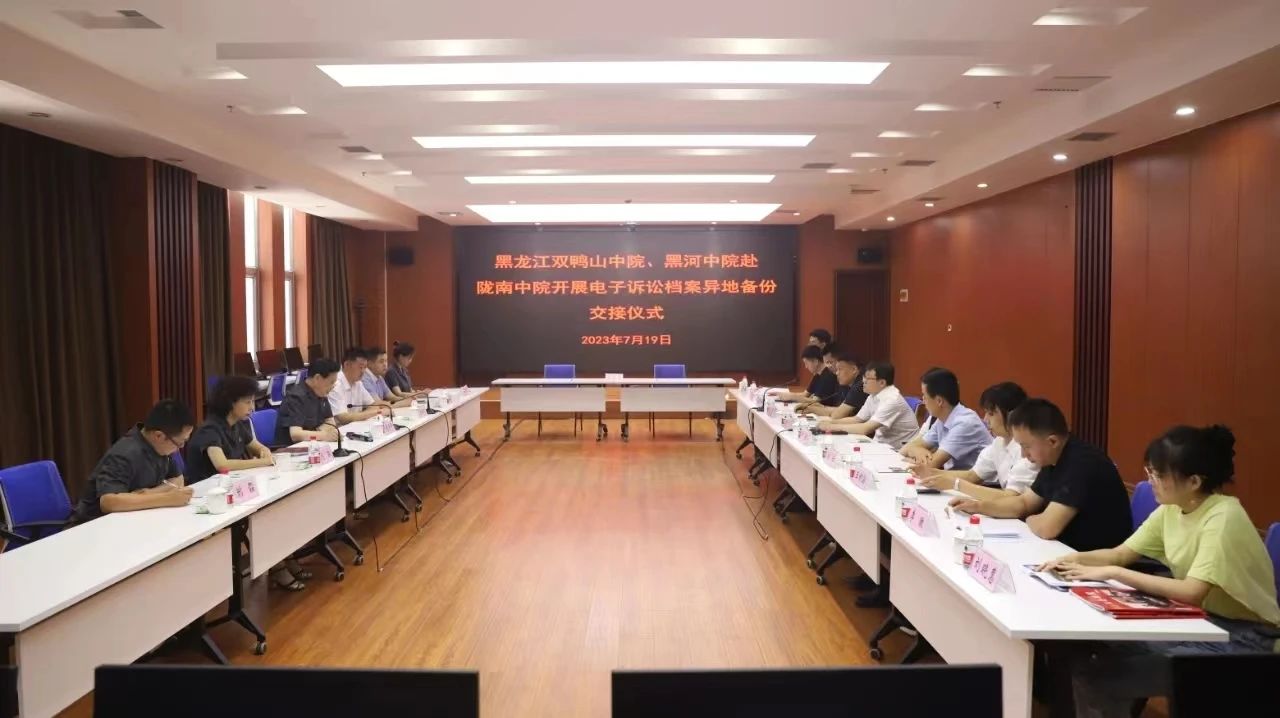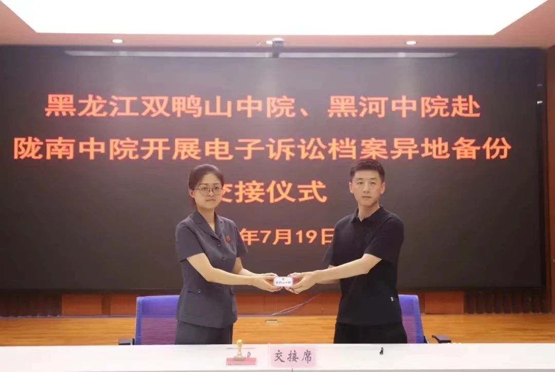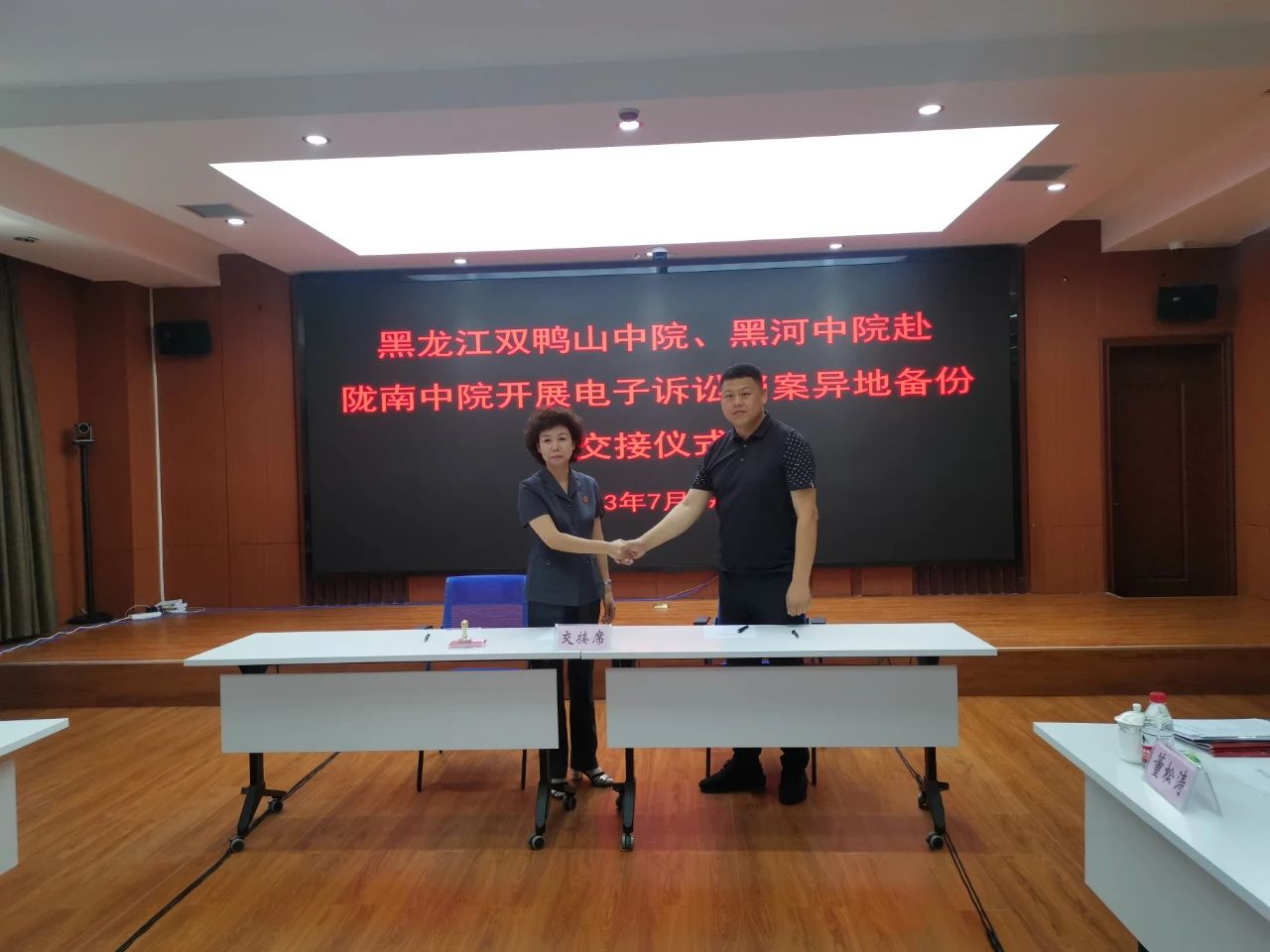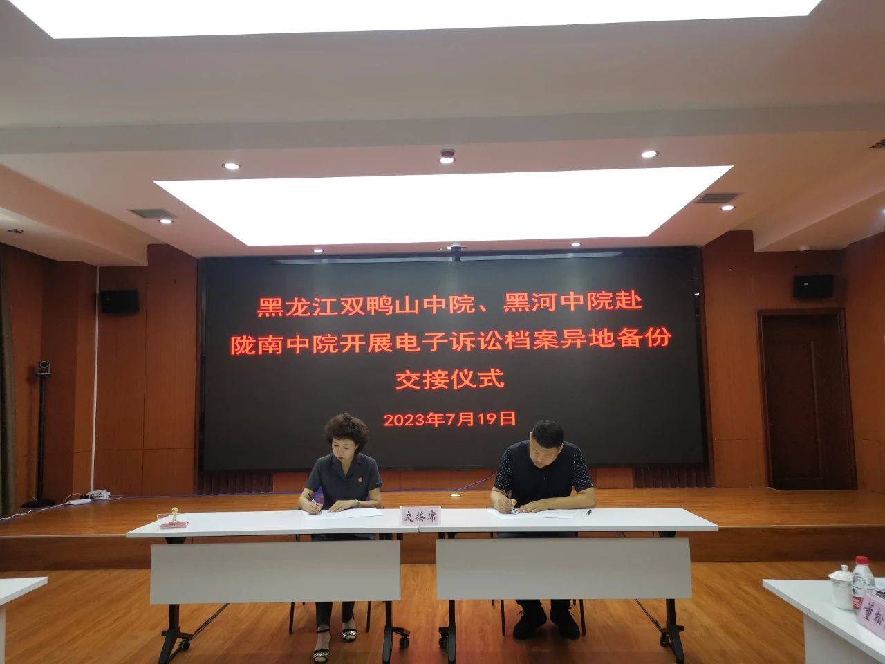 为最大程度地保证档案信息的安全,7月19日,在黑龙江省高院办公室和甘肃省高院办公室的见证下,双鸭山市中院与陇南市中院举行异地备份电子档案数字的交接仪式,标志着双鸭山、陇南两地法院电子档案互相异地备份工作的全面开展。