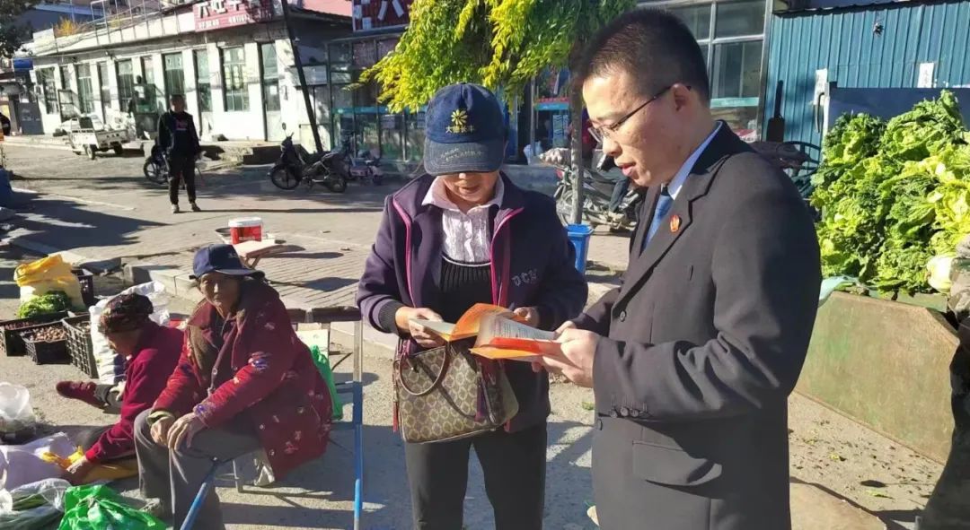 为提高辖区内农户在购销粮食过程中的风险防范意识,青原法庭干警在青原镇集市设立服务岗,了解农户们在粮食购销过程中面临的困难,现场解答并告知救济途径,并通过发放普法宣传手册,向前来赶集的农户们进行普法,切实从源头预防和减少矛盾纠纷发生,以实际行动护航秋收工作。