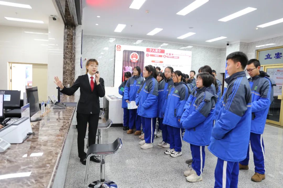 讲解员带领工作人员代表、师生们参观了安检室、诉讼服务中心等地。参观人员感受到法院文化的同时,也充分了解法院在便民利民、司法改革、信息化建设等方面的努力与成效。