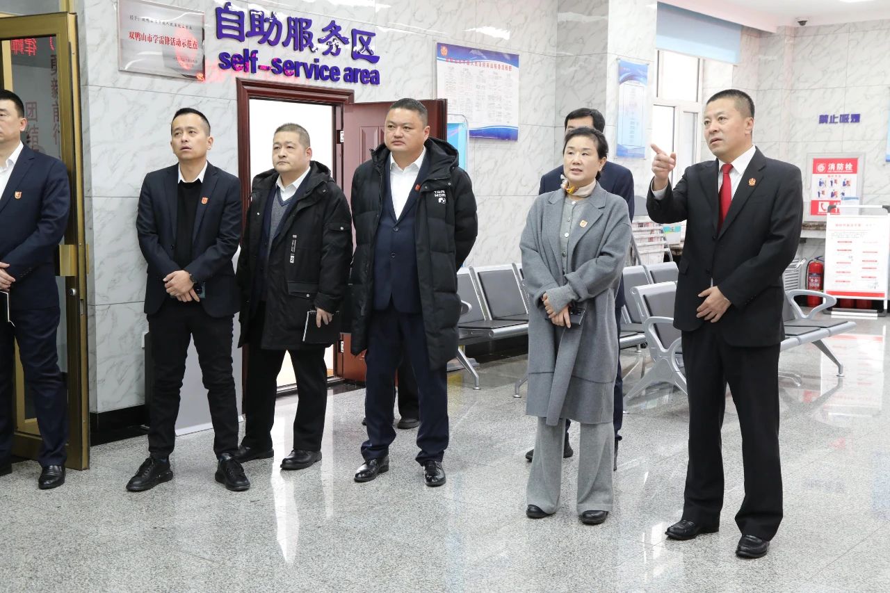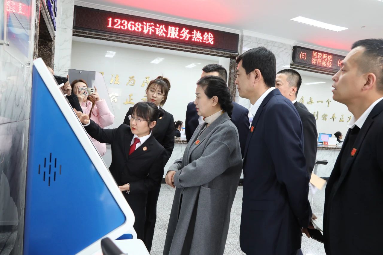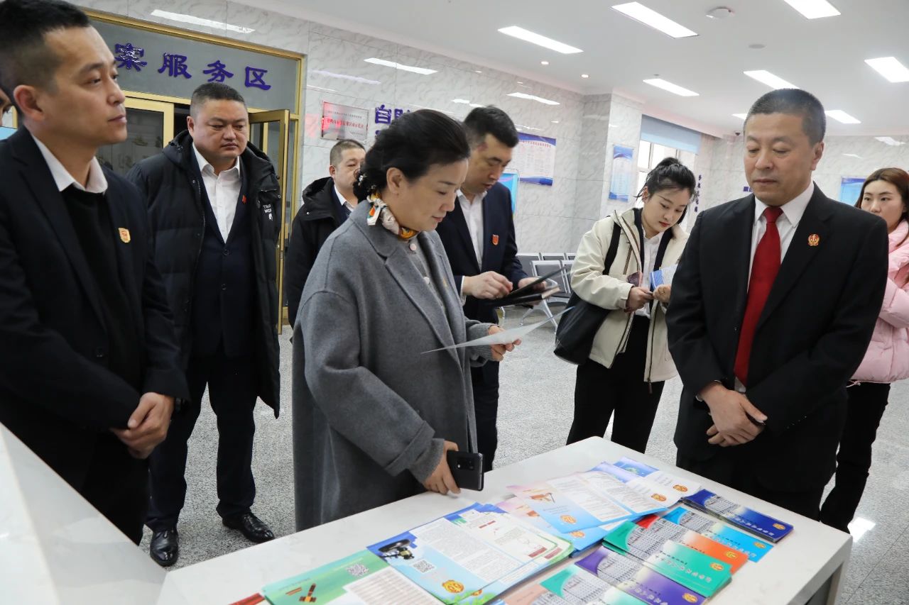 在聆听了原创歌曲后,讲解员引领市劳动人事争议仲裁院一行十余人,在党组成员、政治部主任贾立仁的陪同下,参观了诉讼服务中心、智慧审判法庭、宪法墙等场所,近距离了解了双鸭山中院开展优化营商环境、推进司法体制改革、司法为民工作创新等各方面工作情况。