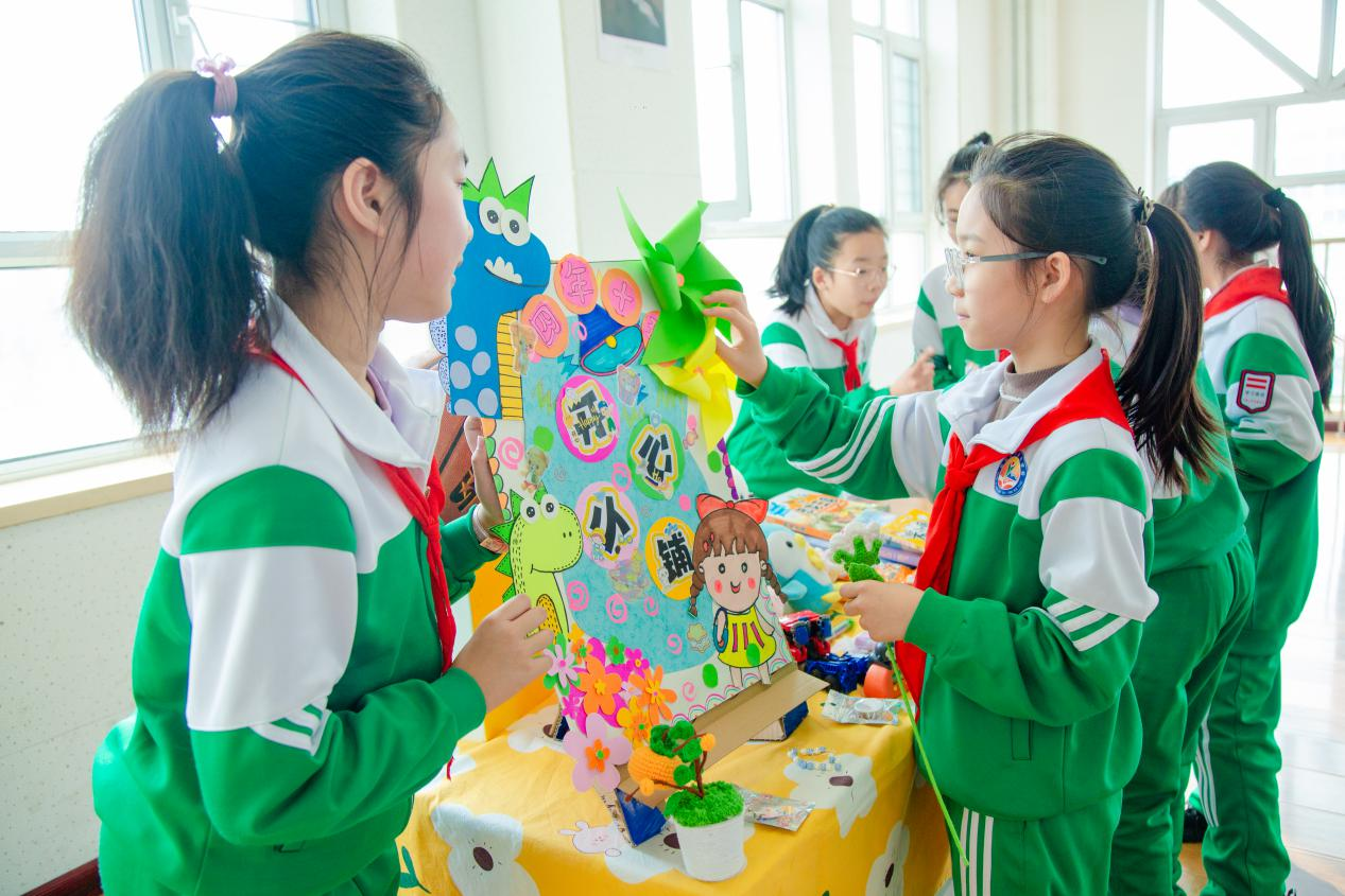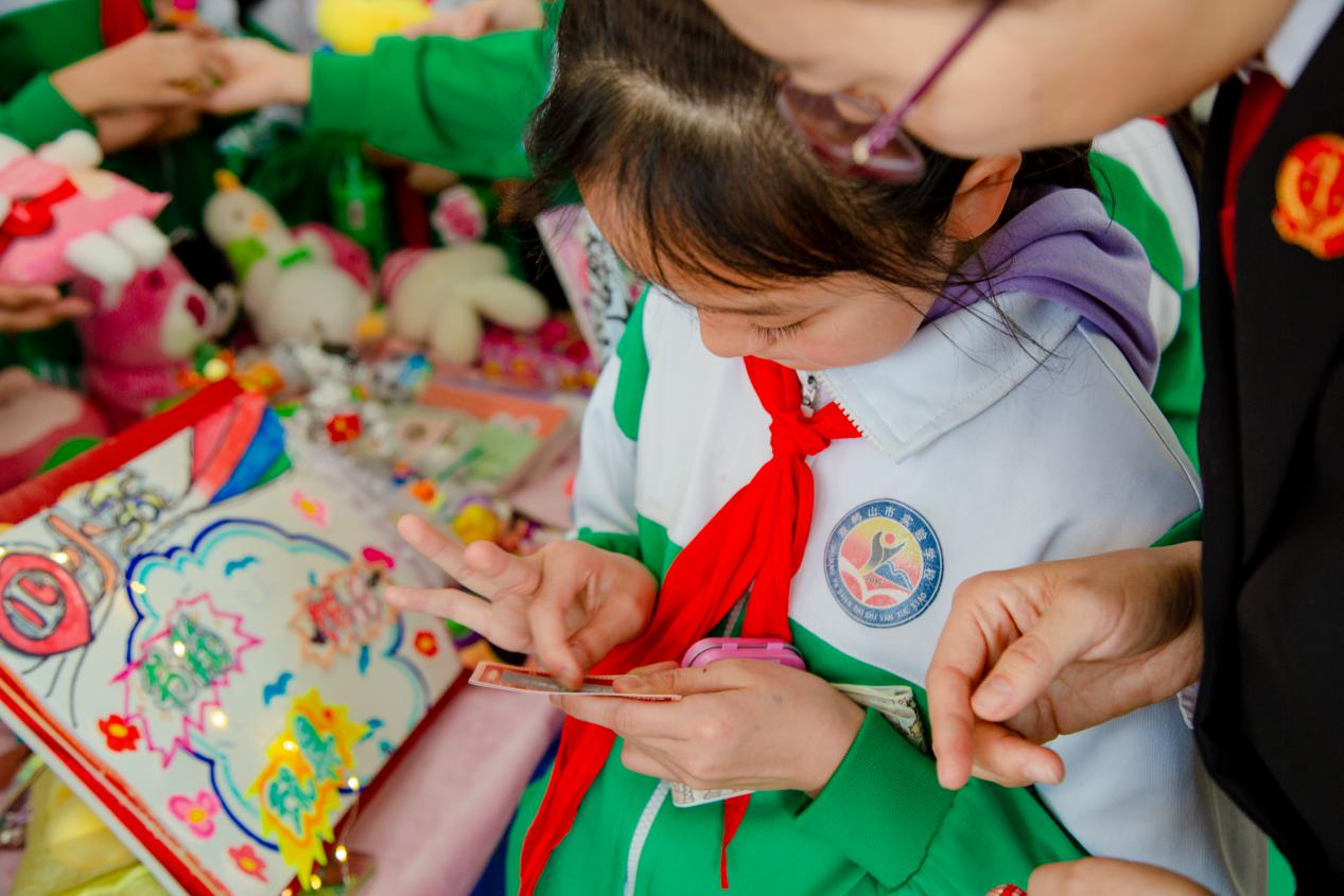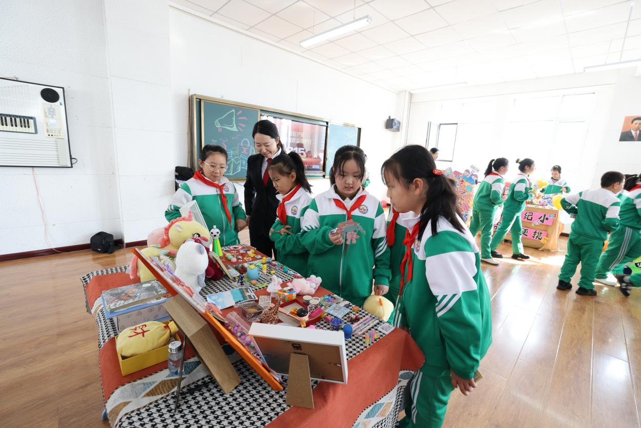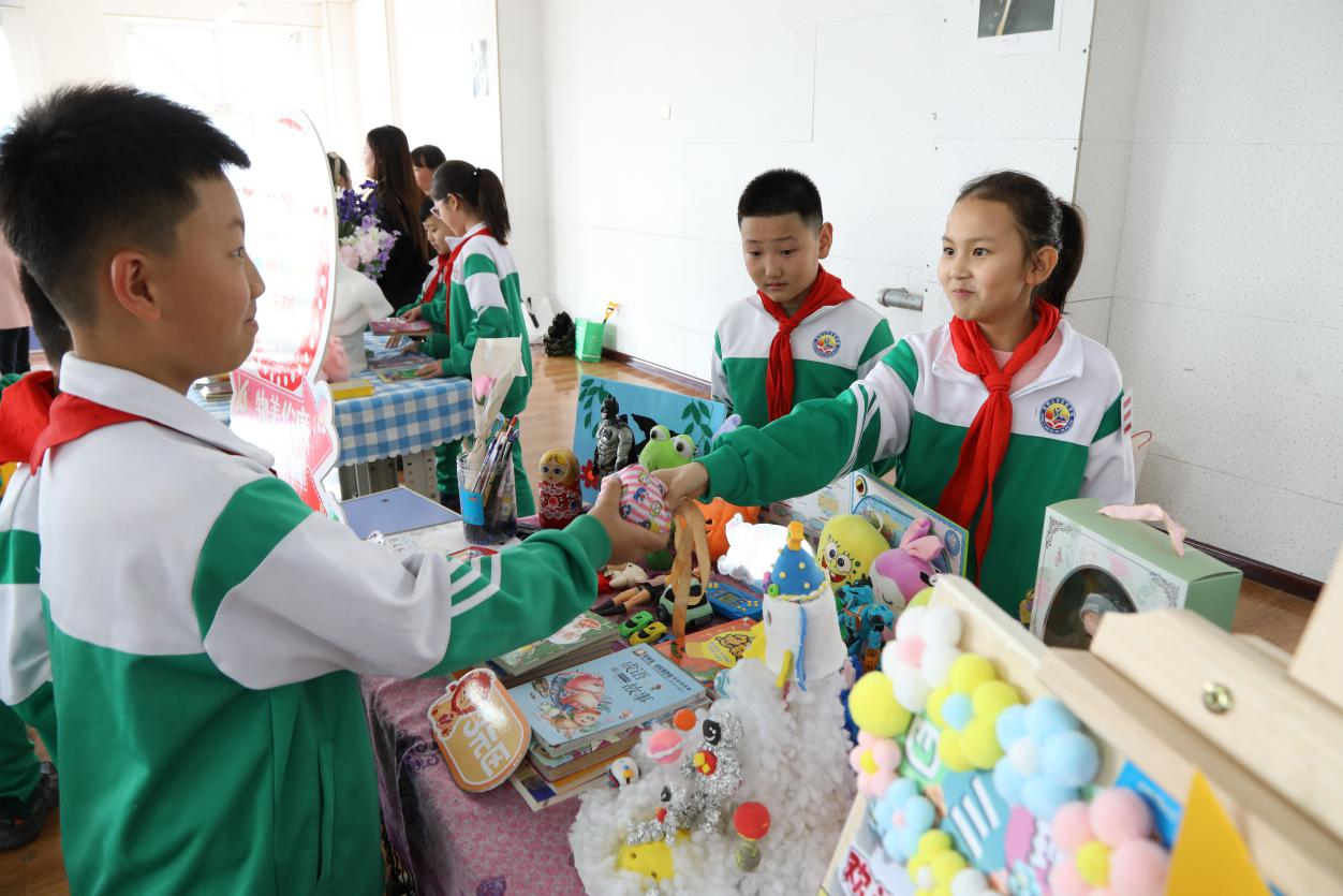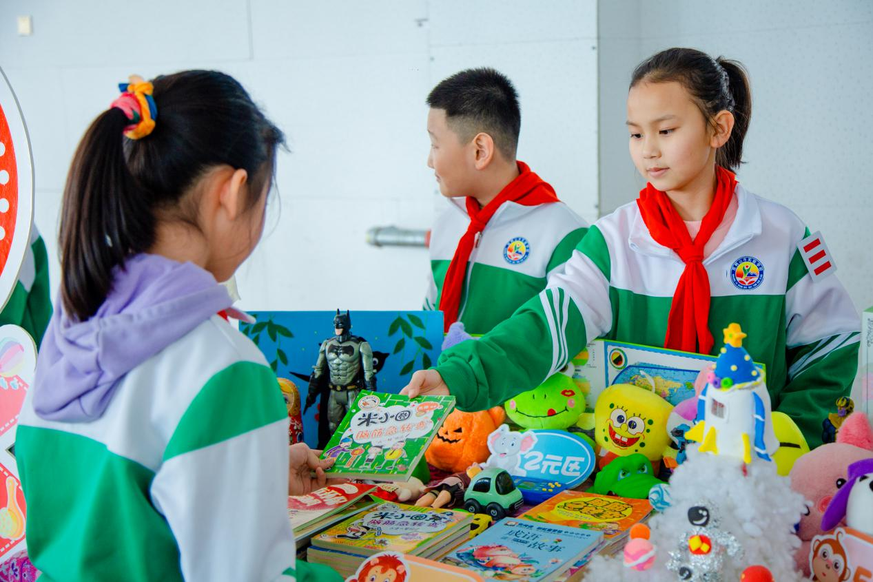这场不局限在课堂、专属小朋友们的“3•15”活动,让一部分学生“变身”小商人“撑起”小集市,将自创作品、旧图书、文具等物品进行摆摊出售,他们使出浑身解数,用“心愿卡”“买一赠一”“以物换物”等方式招揽“生意”;“小顾客”们精心挑选喜欢的物品,现场叫卖声、还价声此起彼伏。