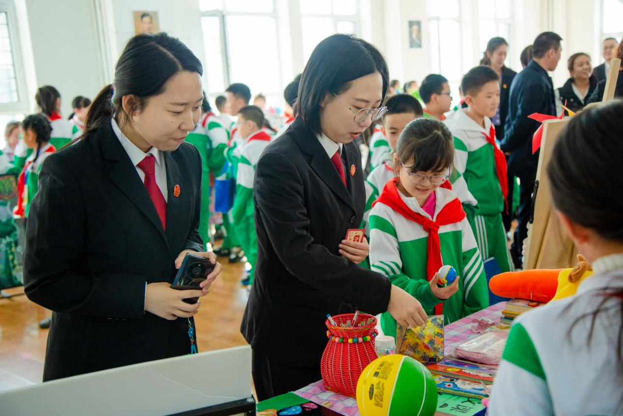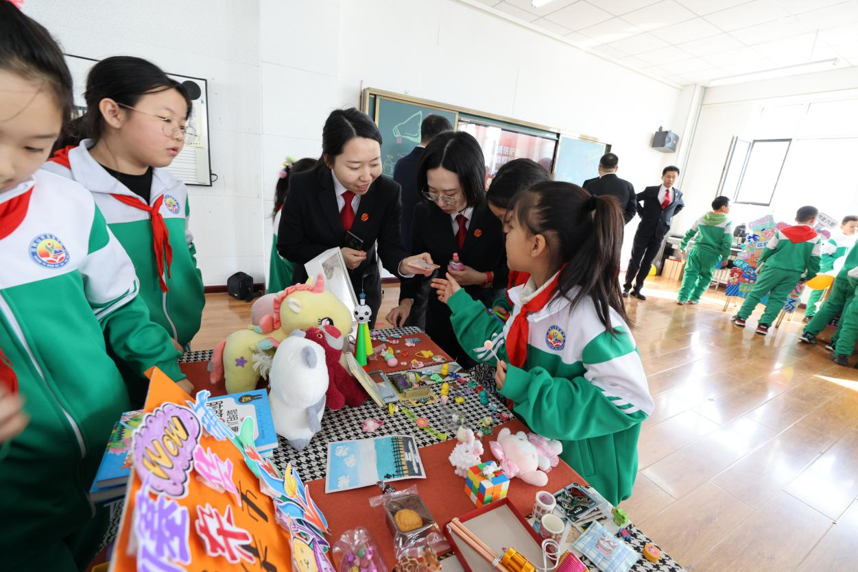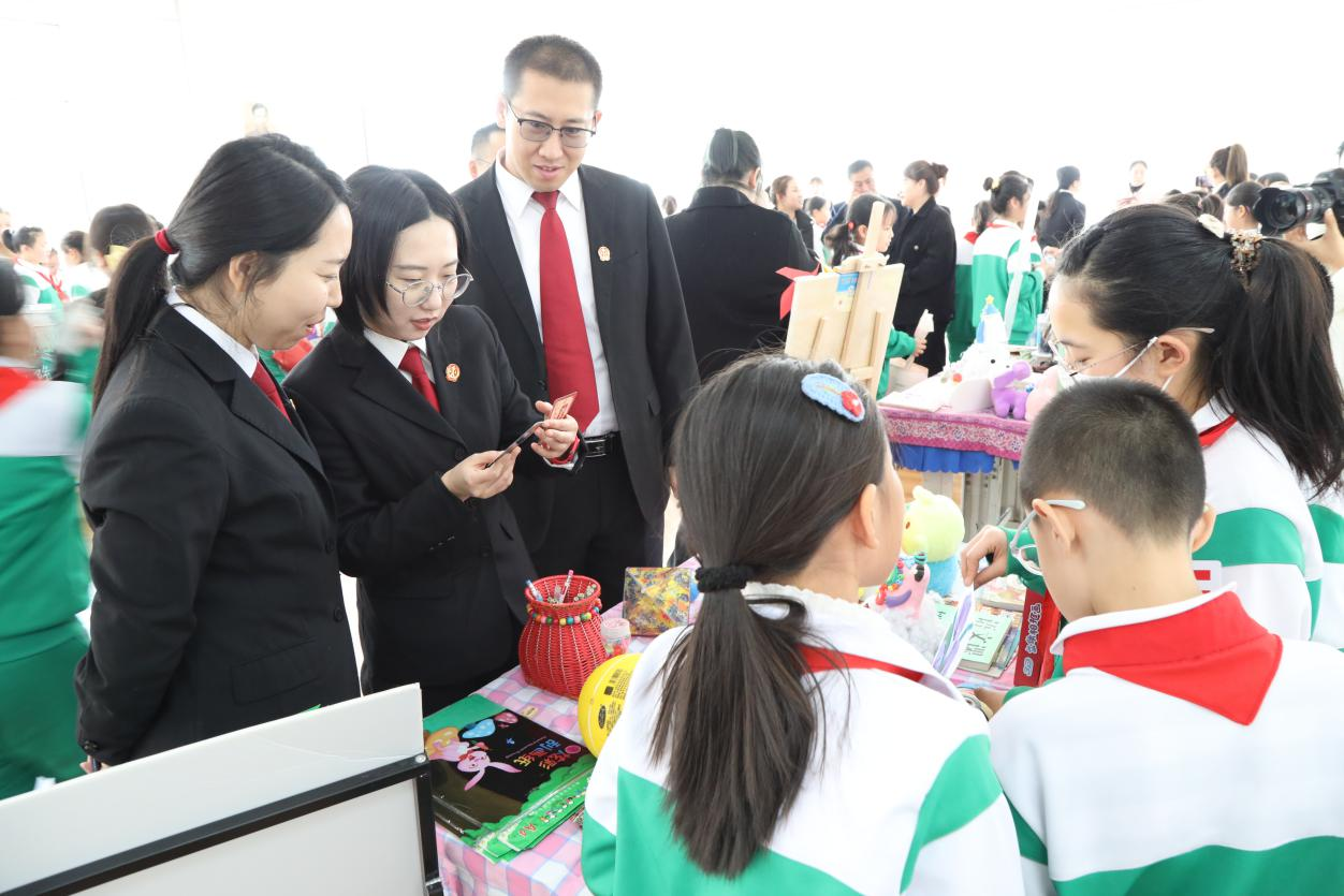 法官们化身为指导老师,穿梭于各个摊位之间,开展普法教育引导他们正确进行交易,让同学们深刻理解诚信交易的重要性以及如何在日常生活中维护自己的合法权益,使学生们在亲身参与中感受法治的力量。