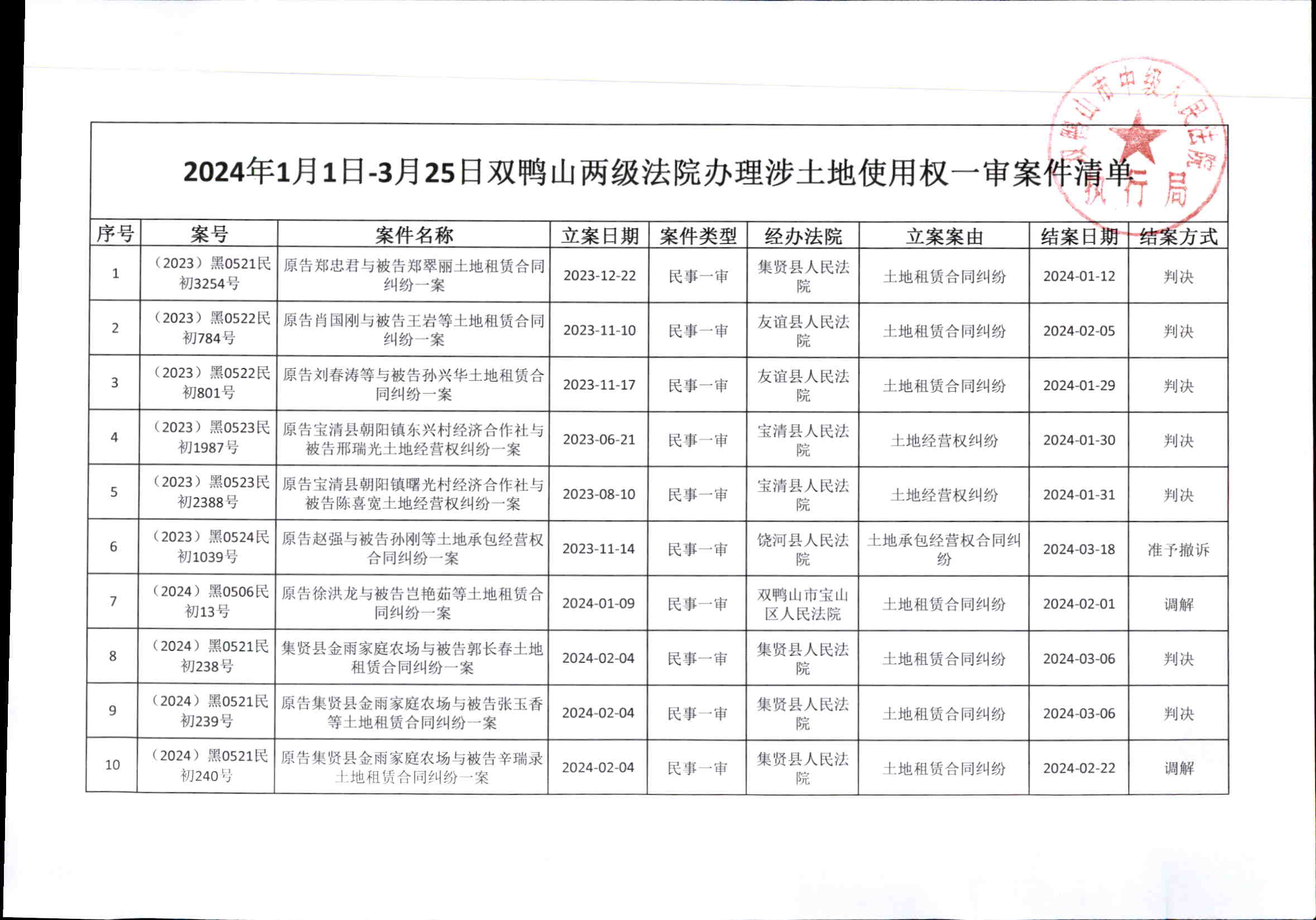 第四条[公开要求] 本院将以每季度或根据案件审结数量以月为单位,汇总涉土地争议一审案件的审结情况,通过召开新闻发布会和在“双鸭山市中级人民法院网”向社会公开案件审判信息情况。