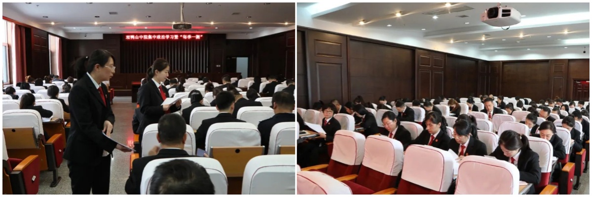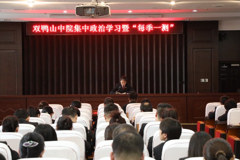 3月29日,双鸭山市中级人民法院开展集中政治学习,深入学习习近平总书记在全国两会期间重要讲话精神和全国两会精神、《党史学习教育工作条例》和《中国共产党政法工作条例》,并进行“每季一测”考试。