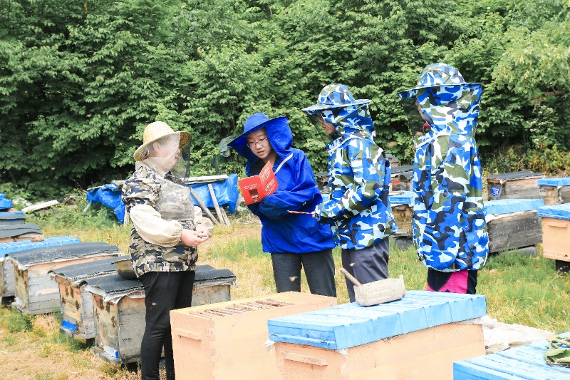 为有效保护东北黑蜂自然保护区环境资源,助力县域东北黑蜂经济高质量发展,近日,黑龙江省饶河县人民法院立案庭法官会同黑龙江饶河东北黑蜂国家级自然保护区管理局相关人员,深入山林,走进蜂农养殖场地,与蜂农们聊蜜蜂、话经营,发放普法宣传册,了解其在黑蜂养殖、销售等方面可能存在的风险,为蜂农提供普法宣传、技术指导等方面的服务。