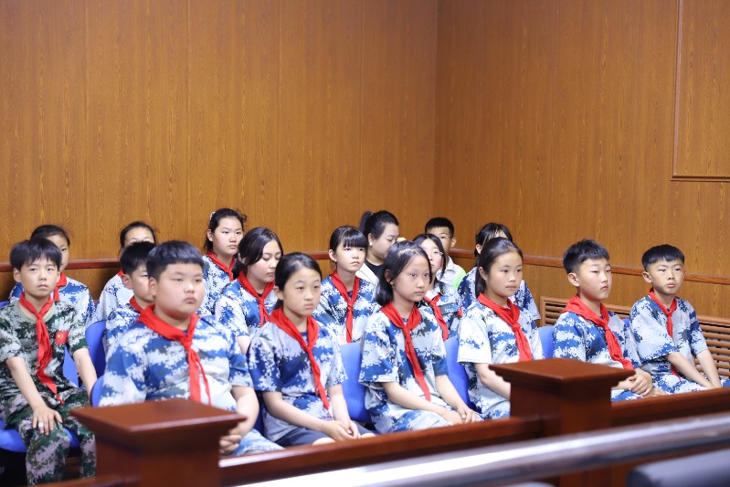 为深入推进未成年人法治教育,增强学生识毒、防毒、拒毒意识,在第75个“六一”国际儿童节来临之际,宝山区法院邀请了育人小学师生开展“法治护航青春”主题公众开放日活动,组织师生代表旁听一起贩毒案件庭审,并通过沉浸式体验司法流程、零距离感受法治文化,为小朋友们上了一堂生动的“禁毒法治课”。