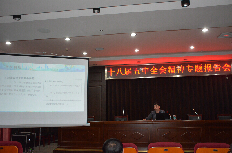 12月4日,双鸭山市中级人民法院开展深入学习宣传贯彻党的十八届五中全会精神专题讲座,由市委党校张健教授进行宣讲,通过这次讲座,使全体干警对十八大五中全会有了进一步的理解和认识,全体干警会认真学习,好好消化,真正做到学思践悟、学以致用,不断开创全市法院工作新局面。