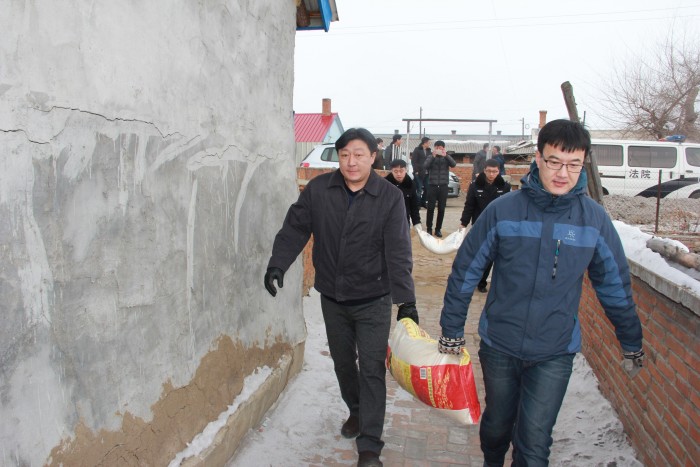 2017年1月10日,集贤县人民法院党组成员在院长于夫鑫的带领下组成慰问小组来到永安乡走访慰问贫困群众。慰问小组首先向永安乡干部了解贫困群众的基本情况,随后进行了慰问走访,为他们送去了大米、面粉、豆油等过年物品和慰问金,表达了县法院的新春祝福。在帮扶对象家中,于夫鑫与困难群众亲切交谈,详细了解他们的日常生活情况,鼓励他们要积极面对困难、奋发向上,争取早日脱贫致富。