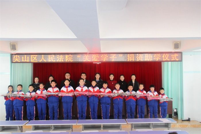 早春三月,乍暖还寒。尖山区法院党总支委一行8人来到逸夫小学开展“捐资助学献爱心”活动。他们代表我院全体党员为14名困难学生送去了党的温暖,并为他们捐赠了助学金和文具。这是尖山区法院开展“两学一做”活动以来,党建工作求实效的一个缩影。